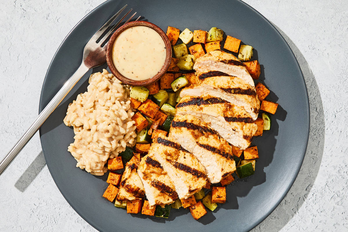 Ingredients: Boneless Chicken Breast With Rib Meat, Sweet Potatoes (Sweet Potatoes, Sodium Metabisulfite (Added To Maintain Color)), Zucchini, Whole Milk (Pasteurized Milk, Vitamin D3), Water, Avocado Oil Mayonnaise (Avocado Oil, Egg Yolks, Water, Distilled Vinegar, White Mustard (Distilled Vinegar, Mustard Seed, Sea Salt) Salt, Lime Juice From Concentrate, Lemon Juice, Citric Acid, Lime Oil), Arborio Rice, Coconut Sugar, Olive Pomace Oil (Refined Olive Pomace Oil, Extra Virgin Olive Oil), Liquid Whole Eggs (Whole Eggs, Citric Acid, 0.15% Water Added As Carrier For Citric Acid. Citric Acid To Preserve Color), White Distilled Vinegar (White Distilled Vinegar, Diluted With Water To 5% Acidity), Blue Agave Nectar, Unsalted Butter (Pasteurized Cream, Natural Flavorings), Vinegar, Horseradish (Horseradish Roots, Distilled Vinegar, Salt, Vinegar), Coconut Aminos (Coconut Nectar, Coconut Blossom Sap, Sea Salt), Sea Salt, Lemon Juice, Garlic, Toasted Garlic Powder, Paprika (Paprika And Silicon Dioxide (Added To Make Free Flowing)), Vanilla Extract (Vanilla Bean Extractives In Water And Alcohol), Smoked Black Pepper (Pepper, Smoke Flavor), Smoked Paprika, Granulated Onion, Ground Mustard Seed, Granulated Garlic, Ancho Chile Powder, Italian Seasoning (Garlic, Oregano, Basil, Black Pepper, Parsley, Rosemary, Marjoram, Thyme, Savory, Sage), Cinnamon, Cayenne Pepper, Dried Oregano, Liquid Smoke (Water, Hickory Smoke Concentrate), Coriander The nutrition facts are based off of the recommended serving size. Serving Size = 1 Tray (369g)
