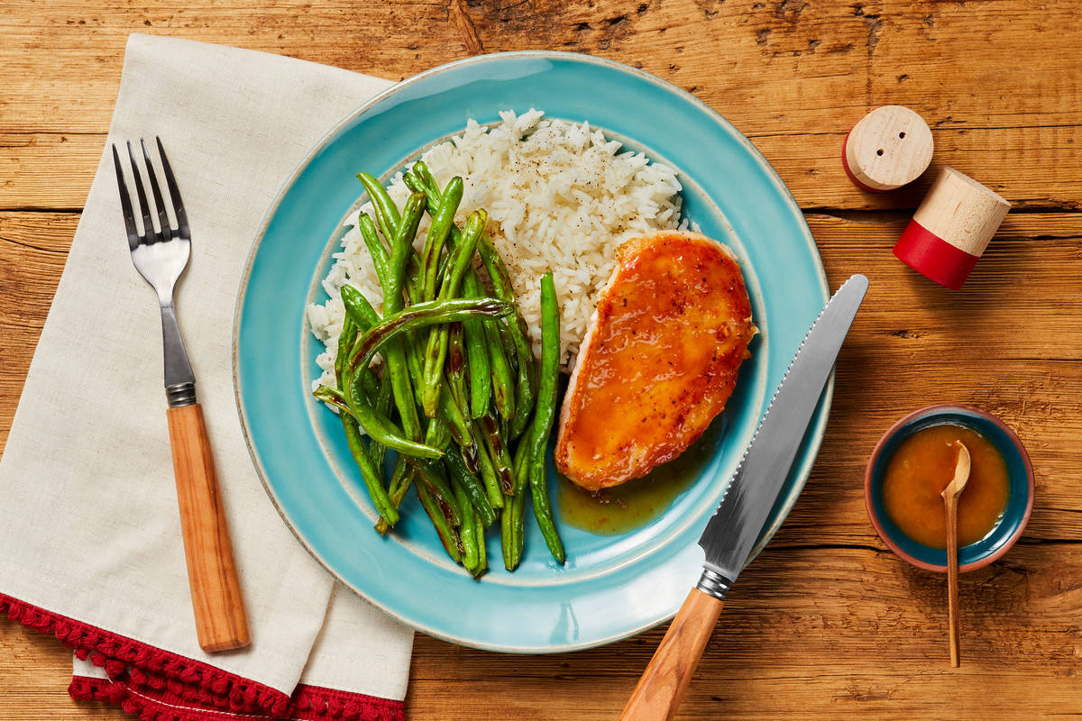 Chicken breasts are a reliable go-to for dinner—easy to cook and pleasing to just about every palate. But let’s face it: they can be a little bit humdrum sometimes. Which is why we’ve enlisted the help of an apricot sauce to bring them out of their doldrums. It coats each bite of meat in jammy stone-fruit sweetness and even tastes great drizzled over the potatoes and roasted green beans on the side.