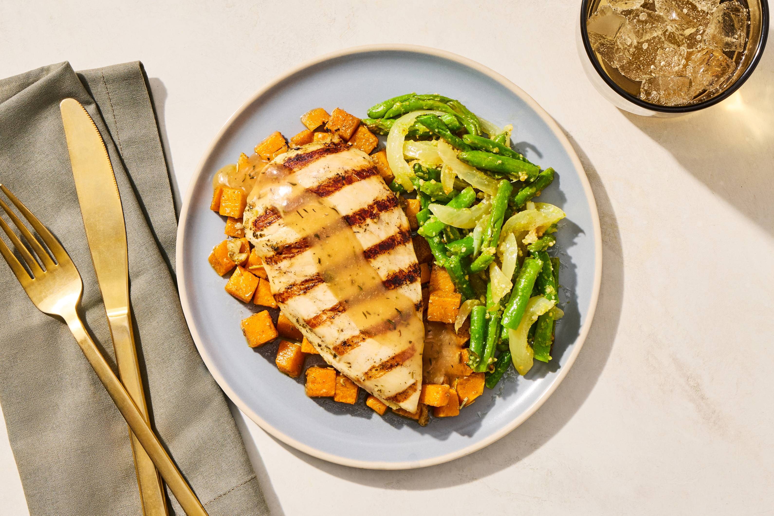 Wash and dry all produce. Preheat oven to 425 degrees. Halve, core, and cut apples into ¼-inch-thick slices. Melt half the cinnamon butter in a medium ovenproof pan over medium-high heat. Add apples, brown sugar, and a pinch of salt. Cook, tossing, until apples are slightly softened, 3-5 minutes. Remove from pan and set aside. Wipe out pan.