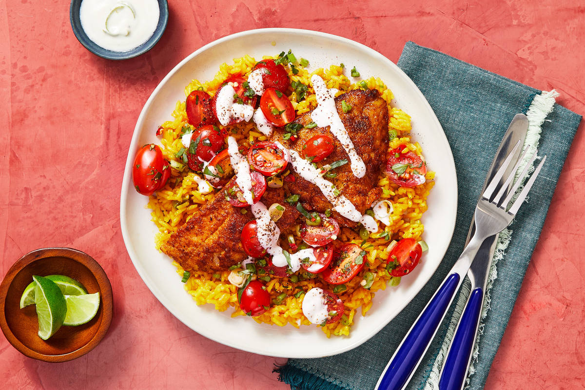 Salsa fresca is our favorite way to feel warm weather vibes all year round. It’s juicy and tangy with a touch of heat, making it the perfect complement to crispy, turmeric-and-cumin-spiced rockfish. The feisty fillets are served on top of steamy yellow rice and blanketed in lime crema and said salsa. No matter the temperature, one bite of this delicious dish will make everything feel a whole lot sunnier.