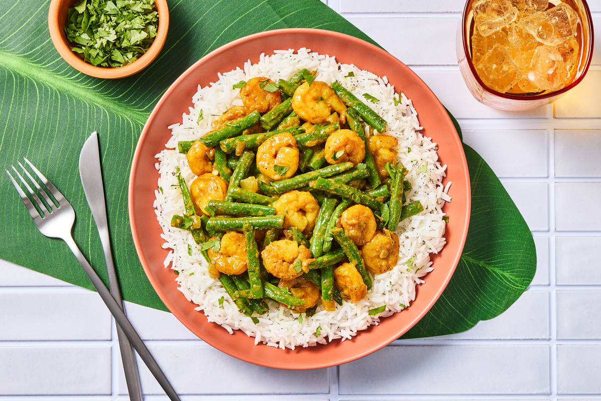 In celebration of Asian Heritage Month, we offer a taste of classic Bangladeshi home cooking. Fragrant basmati rice is served alongside juicy, quick-cooking shrimp and crisp-tender green beans sautéed with onion, cumin, curry, and garam masala. It’s finished with butter and garlic for a rich, flavorful sauce, and sprinkled with cilantro for a dash of fresh herbaceousness.