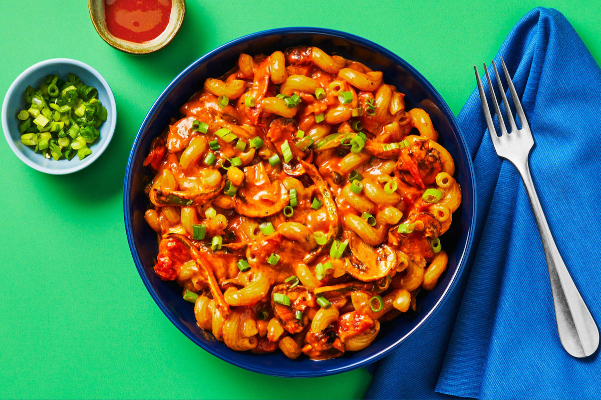 Get ready for a rich, luscious vegan pasta dinner! Coconut milk may sound like an odd addition to your go-to red sauce, but trust us, it’s what gives our vegan veggie-packed pasta its next-level creaminess. You’ll start by sautéing mushrooms and green pepper, adding scallion and garlic, then creating a creamy spiced roux right in the pan for maximum Cajun flavor. Crushed tomatoes and coconut milk bring it all together for a sauce so delicious that cavatappi pasta can’t resist hopping right in. If you’re feeling the bayou in you, finish with hot sauce and let the good times roll!