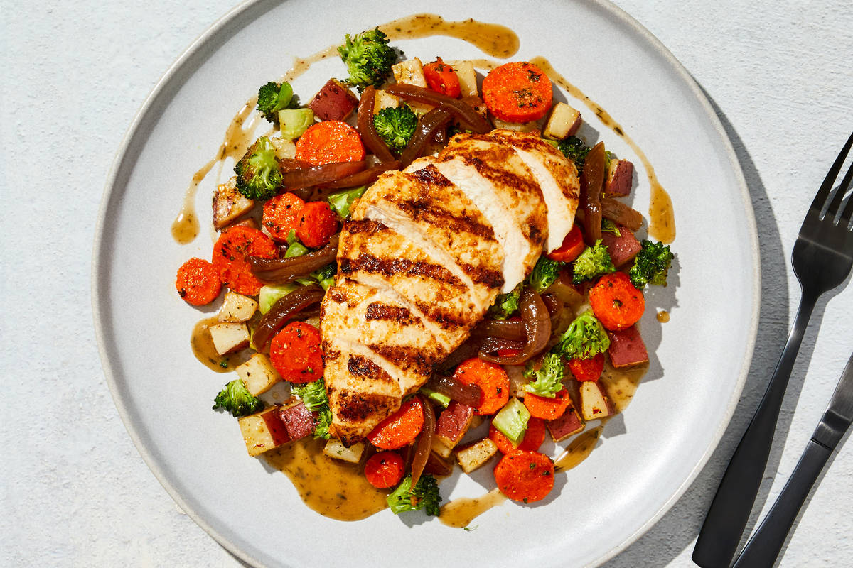 **Ingredients:** Boneless Chicken Breast With Rib Meat, Red Potatoes (Red Potatoes, Sodium Metabisulfite (Added To Maintain Color)), Carrots, Broccoli, Onions, Water, Olive Pomace Oil (Refined Olive Pomace Oil, Extra Virgin Olive Oil), Brown Chicken Stock (Chicken Stock, Mirepoix Stock (Made Of Carrot, Celery And Onion Stocks), Salt, Gelatin, White Wine), Vinegar, Reduced Brown Stock (Veal Stock (Veal Bones, Water), Beef Stock, Mirepoix Stock (Made Of Carrot, Celery, And Onion Stocks), Tomato Paste, Salt, Gelatin, Red Wine Concentrate (Sulfites), Onion Juice Concentrate, Carrot Juice Concentrate, Celery Juice Concentrate, Yeast Extract, Natural Flavors), Chardonnay Wine (Grapes, Sulfites), Unsalted Butter (Pasteurized Cream, Natural Flavorings), Paprika (Paprika And Silicon Dioxide (Added To Make Free Flowing)), Lemon Juice, Garlic, Sea Salt, Toasted Garlic Powder, Toasted Onion Powder, Smoked Black Pepper (Pepper, Smoke Flavor), Coriander, Thyme, Dried Dill, Granulated Onion, Toasted Garlic, Dried Parsley, Granulated Garlic, Crushed Red Pepper Flakes, Smoked Paprika, Liquid Smoke (Water, Hickory Smoke Concentrate), Xanthan Gum, Dried Oregano, Italian Seasoning (Garlic, Oregano, Basil, Black Pepper, Parsley, Rosemary, Marjoram, Thyme, Savory, Sage), Black Pepper The nutrition facts are based off of the recommended serving size. Serving Size = 1 Tray (403g)