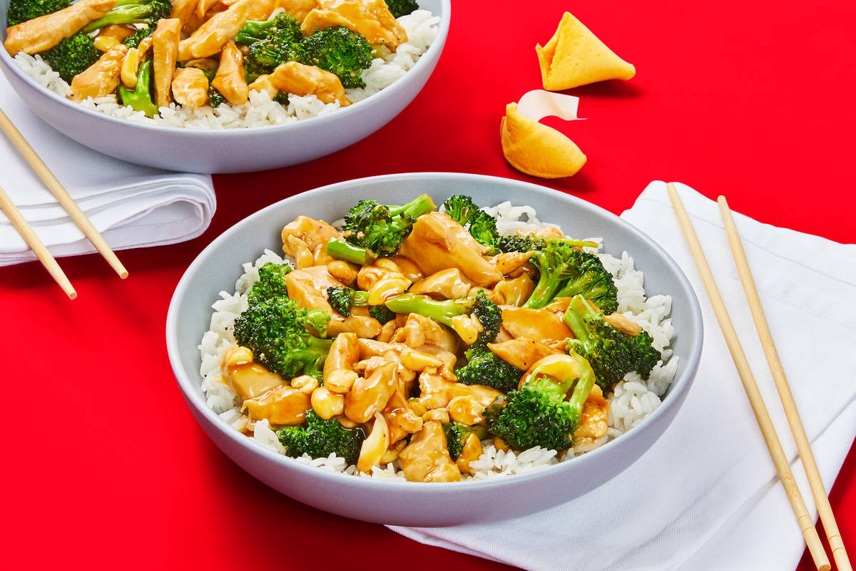 When a cashew chicken craving strikes, you know how it is—you’ve gotta have it immediately, and nothing else will do. Fortunately, this dish is super speedy to whip up in your own kitchen. In just 25 minutes, you can have steamy rice, tender chicken and broccoli, tangy-sweet sauce, and crunchy cashews. Comfort food at its finest? We think so.