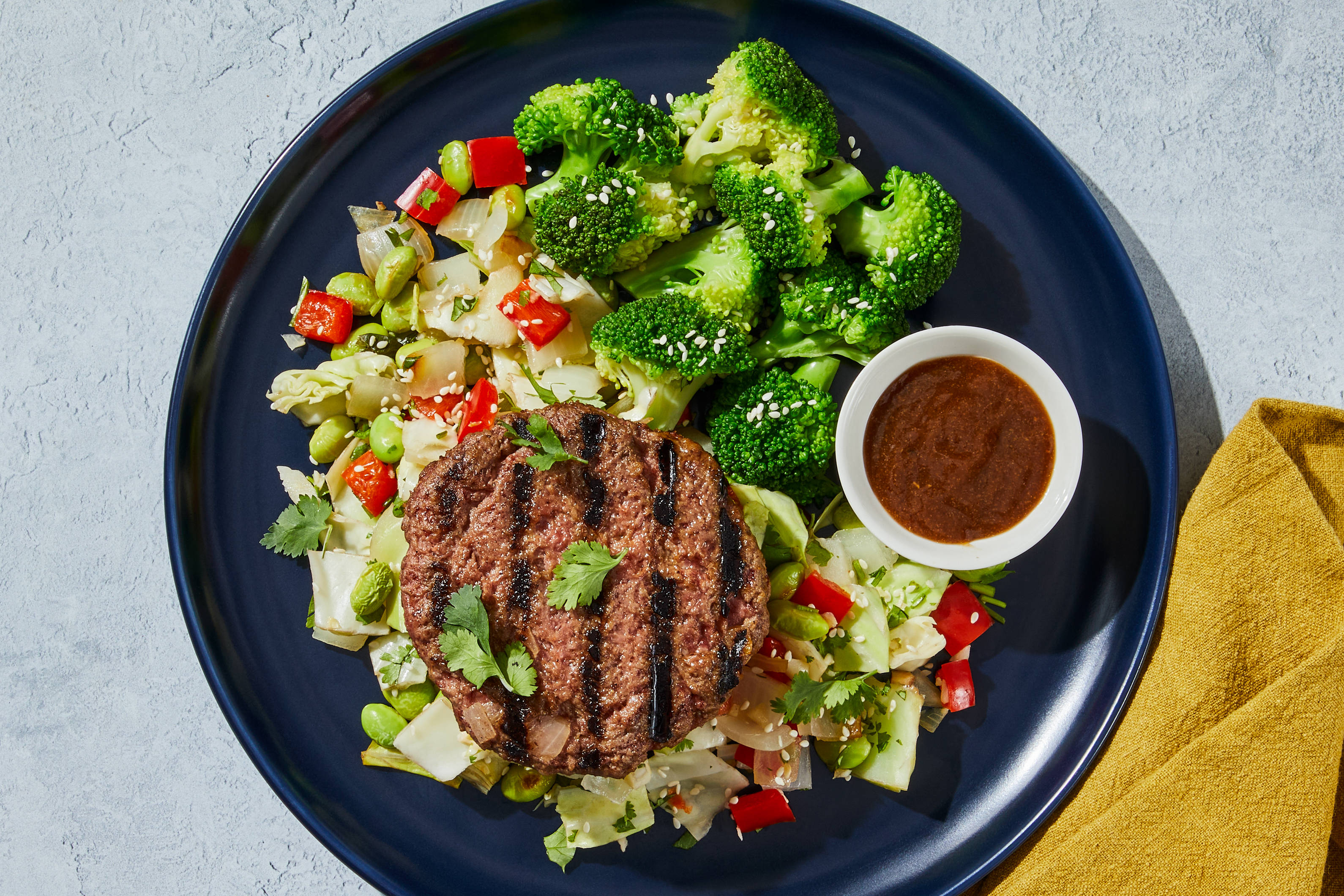 • Pat chicken* dry with paper towels. • Heat a drizzle of oil in a large pan over medium-high heat. Add chicken; season with remaining cumin, remaining garlic powder, a big pinch of salt, and pepper. Cook, stirring occasionally, until chicken is browned and cooked through, 4-6 minutes. • Turn off heat; stir in 1 TBSP dressing (2 TBSP for 4 servings). Transfer chicken to a cutting board and chop into bite-size pieces if necessary. Set aside.