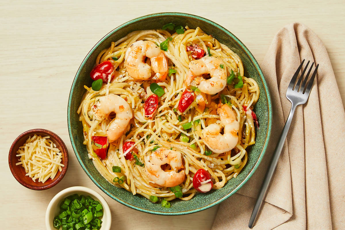 Our chefs have dreamed up the pasta equivalent of an Italian serenade, and it hits all the right notes. Al dente spaghetti is tossed with sautéed tomatoes, juicy seared chicken, and a garlicky, Italian herb-infused cream sauce. Of course, it wouldn’t be pasta night without plenty of Parmigiana; some gets stirred into the sauce, while the rest is sprinkled over top for a decadent garnish. Now that’s amore!