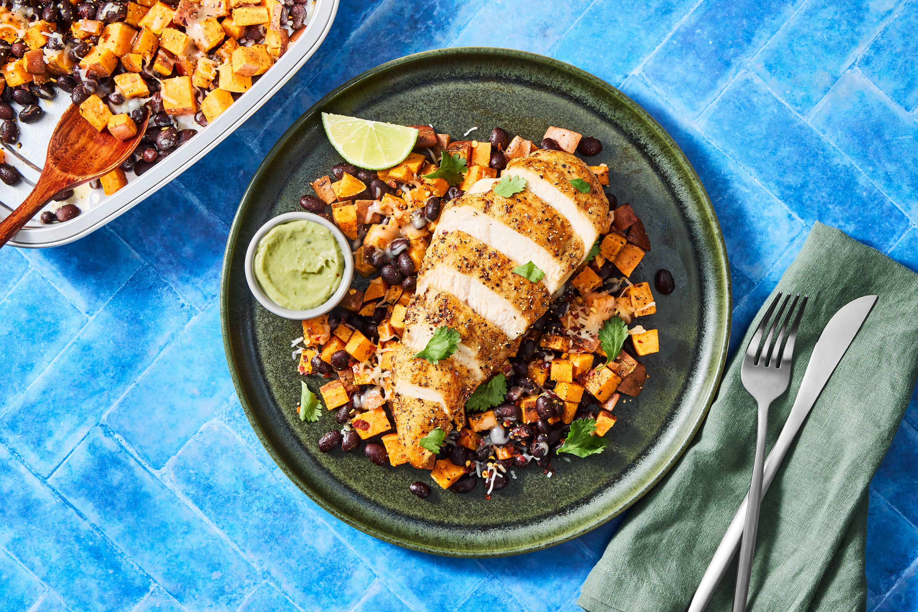 Cheesy, saucy, and herby, this dish is as satisfying as it is simple to make! In our oven-ready tray, you’ll combine juicy Italian sausage, marinara sauce, bell pepper, and olive oil. Once baked, you’ll top with a blend of Italian-style cheeses that get all melty, then finish with dollops of pesto. Served with ciabatta pesto toast, you’ll turn 5 minutes of prep into a showstopper!