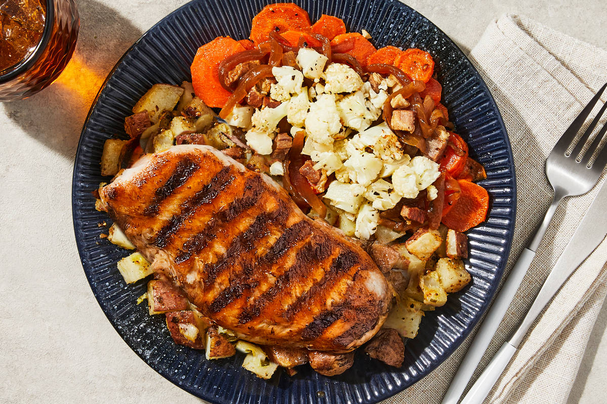 For this hearty meal, a rich honey-butter sauce is spooned over grilled chicken breast resting atop roasted red potatoes. On the side, a mix of roasted carrots and cauliflower is tossed with caramelized onions with bacon for an irresistibly flavorful finish. **Ingredients:** Boneless Chicken Breast With Rib Meat, Red Potatoes (Red Potatoes, Sodium Metabisulfite (Added To Maintain Color)), Carrots, Cauliflower, Water, Onions, Unsalted Butter (Pasteurized Cream, Natural Flavorings), Honey, Olive Pomace Oil (Refined Olive Pomace Oil, Extra Virgin Olive Oil), Nitrite/Nitrate-Free Uncured Bacon (Pork, Water, Salt, Celery Powder, Cherry Baste Aid), Vinegar, Garlic, Shallots, Bacon Fat (Nitrite/Nitrate-Free Uncured Bacon (Pork, Water, Salt, Celery Powder, Cherry Baste Aid)), Green Onions, Sea Salt, Cayenne Pepper Sauce (Aged Cayenne Red Peppers, Distilled Vinegar, Water, Salt, Garlic Powder), Apple Cider Vinegar (Diluted With Water To 5% Acidity), Red Wine Vinegar (Diluted With Water To 5% Acidity), Granulated Garlic, Toasted Garlic Powder, Granulated Onion, Dried Onion Flakes, Dried Chives, Toasted Onion Powder, Black Pepper, Smoked Black Pepper (Pepper, Smoke Flavor), Xanthan Gum, Dried Parsley The nutrition facts are based off of the recommended serving size. Serving Size = 1 Tray (352g)