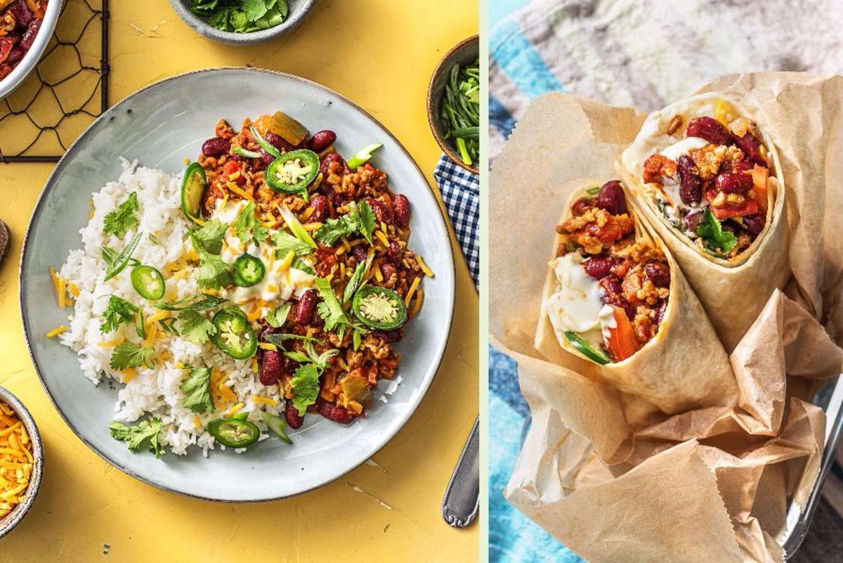 Cook it once, eat it twice: this is a crave-worthy dinner with extras that quickly transform into tomorrow’s lunch. That’s thanks to special added ingredients that can easily be heated up, even at the office (your coworkers will be amazed, trust us). For the first meal here, there’s a hearty beef and chorizo chili over rice with all the fixings. The next day, it rolls right into a burrito that tastes even better once the chili spices have had some time to mesh. *The nutrition facts panel represents the nutrient values for the Chorizo and Beef Chili Dinner. The Lunch Burrito information is as follows: Calories: 900, Fat: 39 g, Saturated Fat: 20 g, Carbohydrate: 88 g, Sugar: 8 g, Fiber: 10 g, Protein: 45 g, Cholesterol: 120 mg, Sodium: 1730 mg.