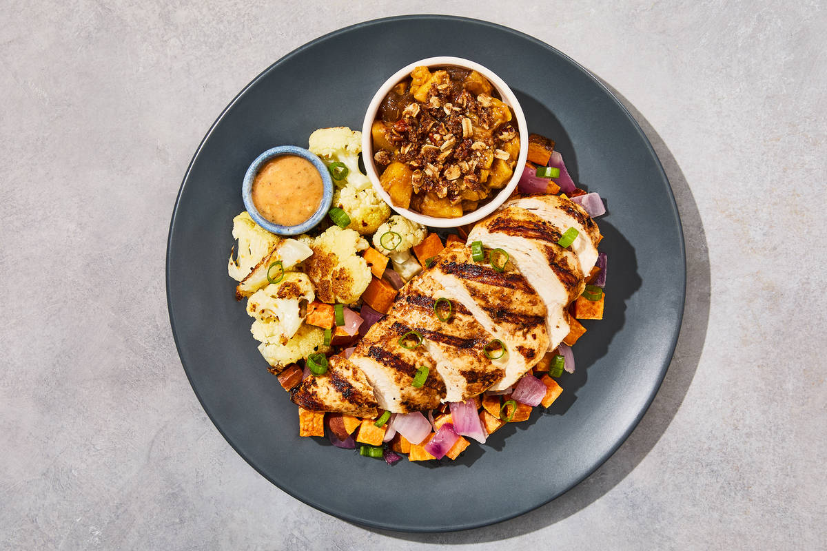 Ingredients: Boneless Chicken Breast With Rib Meat, Cauliflower, Sweet Potatoes (Sweet Potatoes, Sodium Metabisulfite (Added To Maintain Color)), Peaches (Peaches, Ascorbic Acid And Citric Acid (To Promote Color Retention And Retard Oxidation), Malic Acid, Natural Flavors), Onions, Water, Apples, Unsalted Butter (Pasteurized Cream, Natural Flavorings), Olive Pomace Oil (Refined Olive Pomace Oil, Extra Virgin Olive Oil), Coconut Sugar, Dijon Mustard (Distilled Vinegar, Water, #1 Grade Mustard Seed, Salt, Chardonnay Wine, Citric Acid, Tartaric Acid, Spices, Turmeric), Lemon Juice, Garlic, Tapioca Starch, Vanilla Extract (Vanilla Bean Extractives In Water And Alcohol), Vinegar, Rolled Oats, Blanched Almond Flour, Sea Salt, Paprika (Paprika And Silicon Dioxide (Added To Make Free Flowing)), Pecans, Dried Chives, Dried Parsley, Thyme, Toasted Garlic, Gochugaru Chile Flakes, Black Pepper, Brown Chicken Stock (Chicken Stock, Mirepoix Stock (Made Of Carrot, Celery And Onion Stocks), Salt, Gelatin, White Wine), Granulated Garlic, Cinnamon, Cayenne Pepper, Granulated Onion, Toasted Garlic Powder, Smoked Black Pepper (Pepper, Smoke Flavor), Maple Syrup, Xanthan Gum, Smoked Paprika, Liquid Smoke (Water, Hickory Smoke Concentrate), Crushed Red Pepper Flakes, Maple Flavoring (Ethyl Alcohol, Water, Maple Syrup, And Natural Flavor), Dried Oregano, Lemon Powder (Citric Acid, Natural Lemon Flavor)