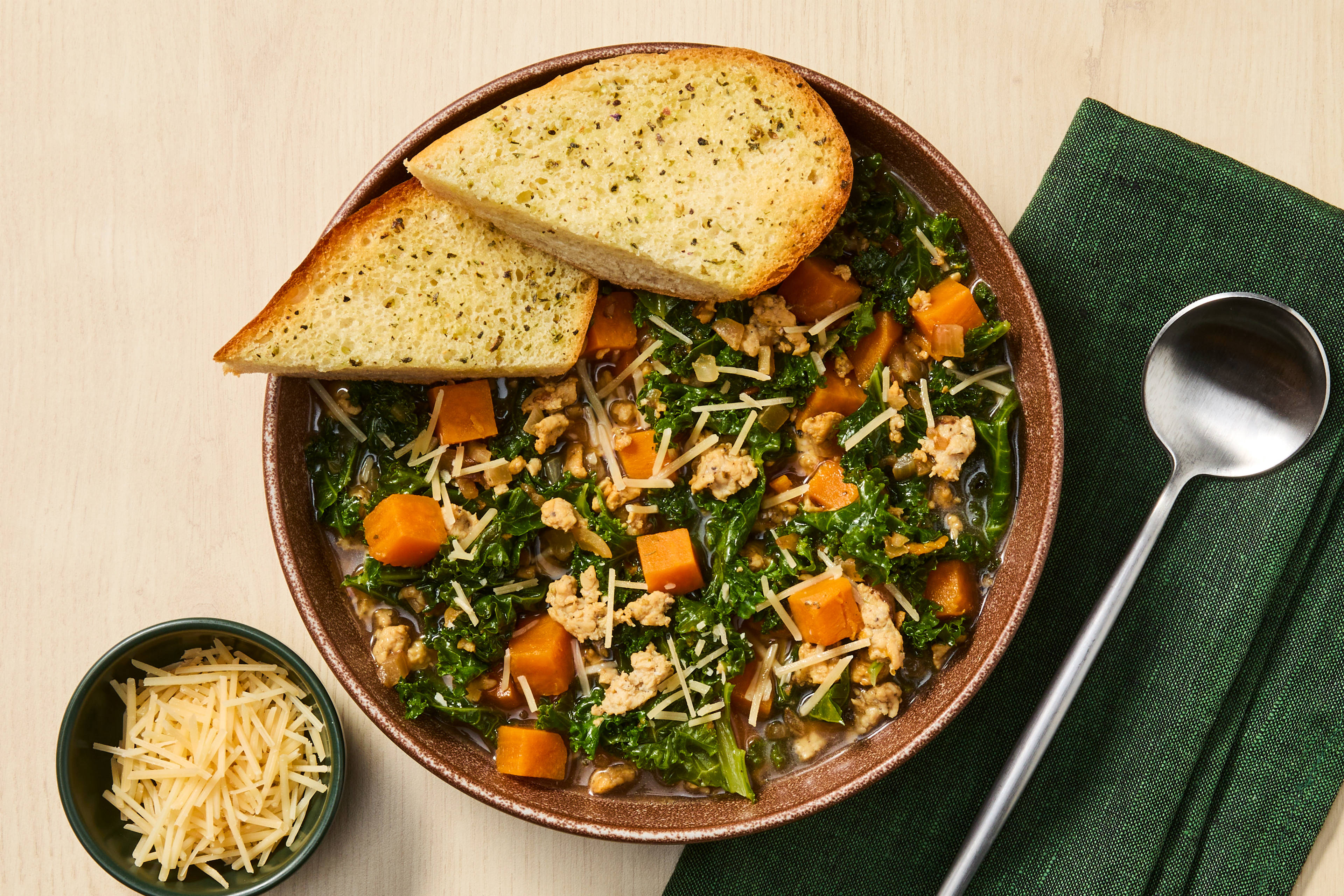 Dukkah (pronounced DOO-kah) is a great way to bring the crunch. The Egyptian blend of crushed nuts, spices, and seeds is fine enough to sprinkle on like a seasoning, but it has enough rugged texture to keep it satisfyingly crisp. Here, it’s used two ways: to add a coating to butterflied chicken breasts and to bring an extra dash of flavor to roasted sweet potatoes.
