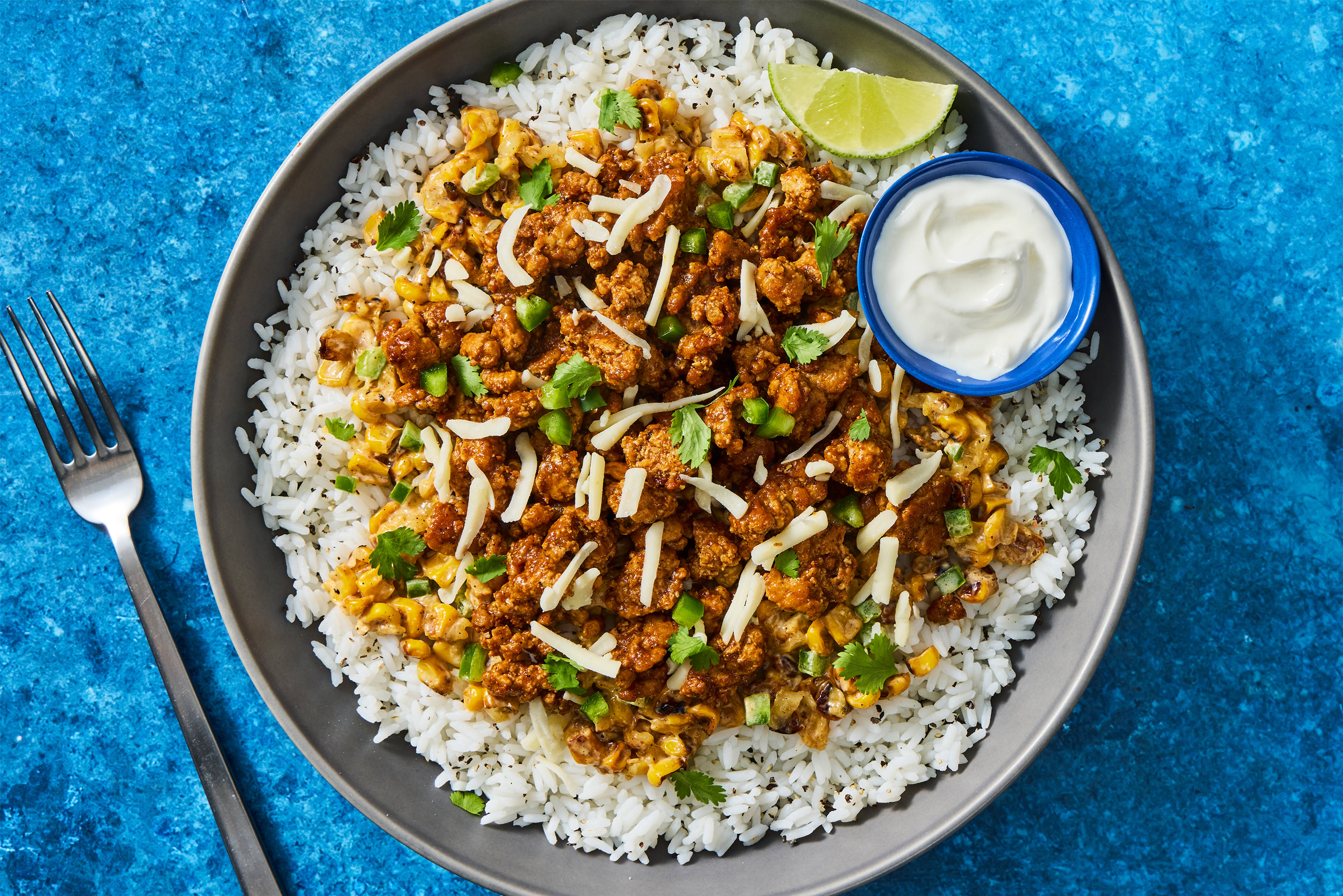 Zest and halve lime. Mix sour cream, a pinch of lime zest, and a squeeze of lime juice in a small bowl. Season with salt and pepper. Stir in 1 tsp water to thin. TIP: Add a splash more water if crema still seems thick—it should have a drizzly, saucy consistency.
