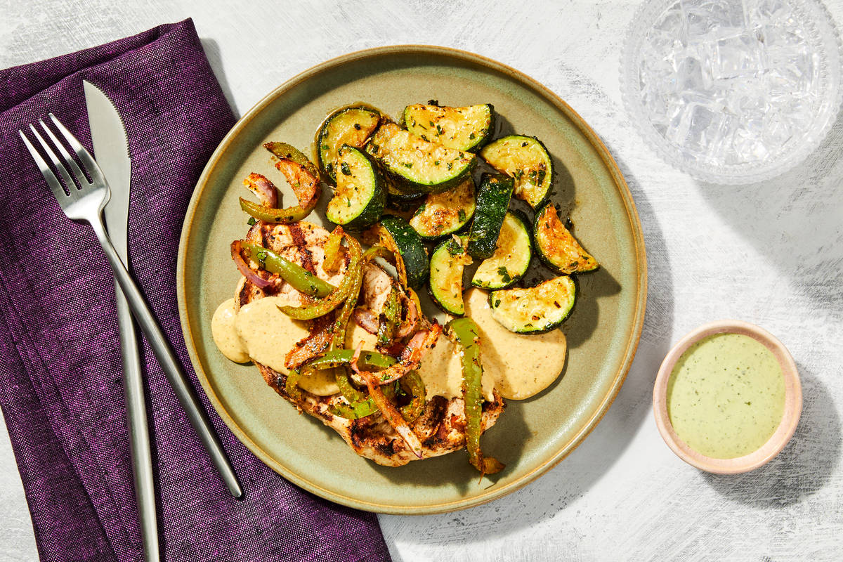 with Roasted Zucchini & Cilantro Sour Cream