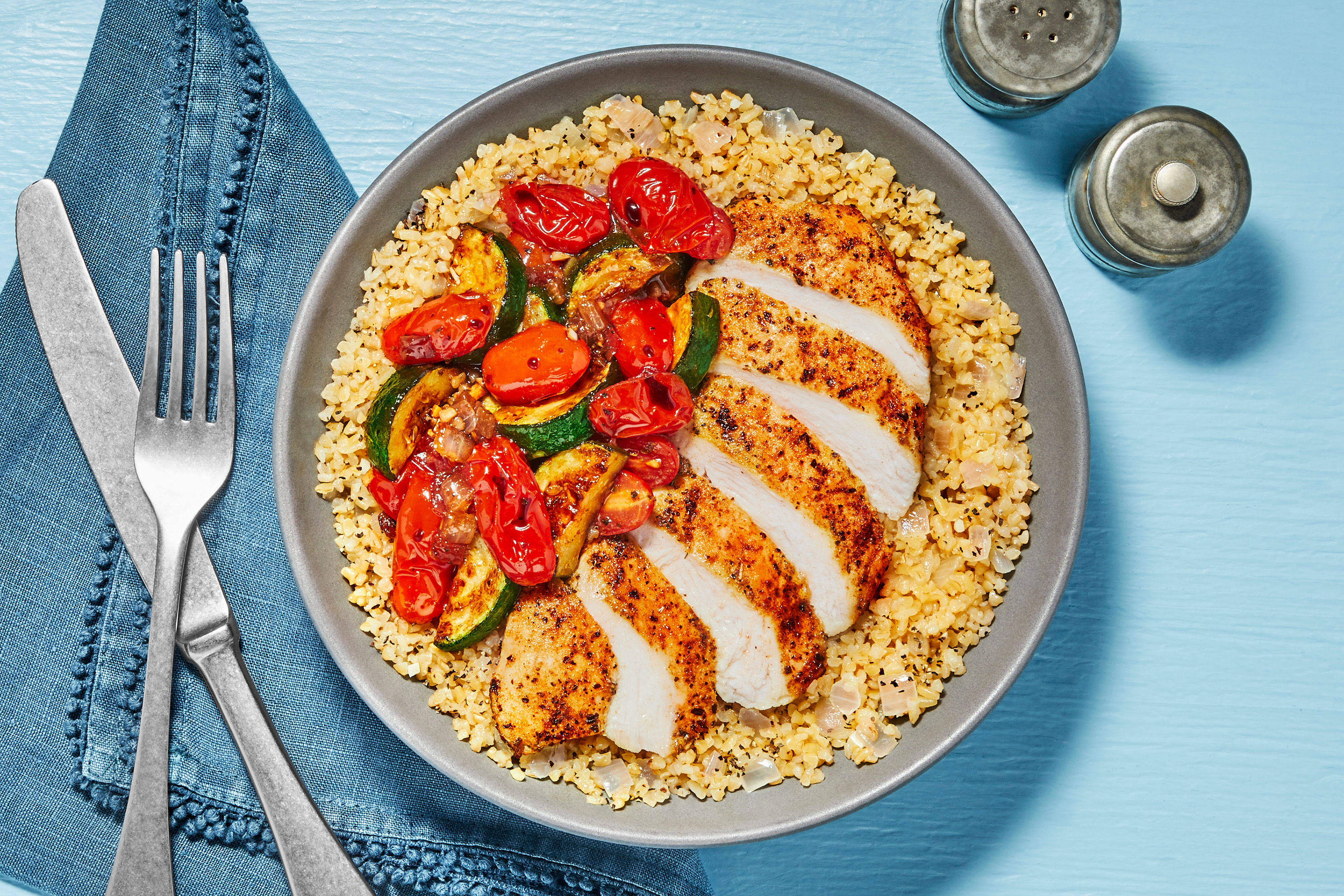 Fajita-Spiced Chicken Bulgur Bowls