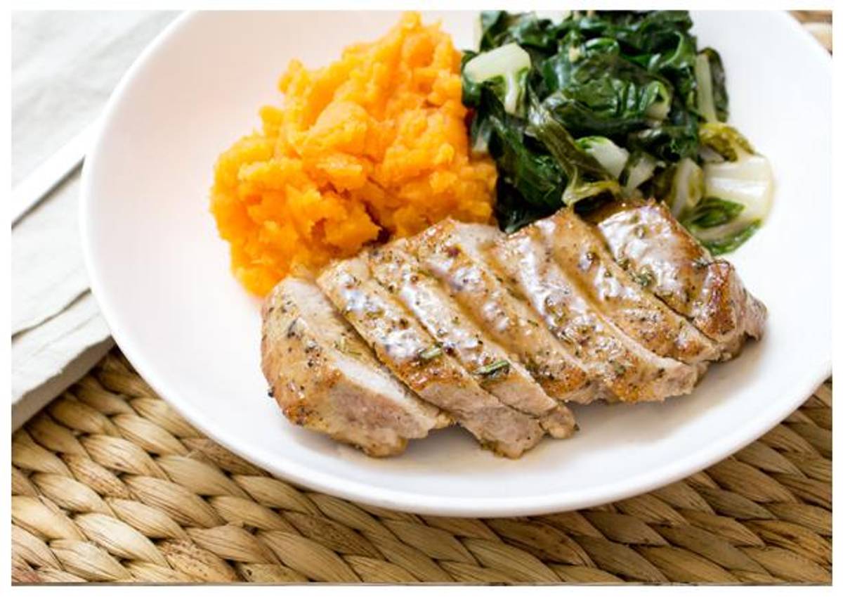 undefinedundefined protein This colorful and rich dish will be a crowd pleaser during these colder winter months. We’ve roasted pork with honey and fragrant rosemary. Serve alongside some sauteed swiss chard and mashed sweet potatoes for that much-needed vitamin boost!