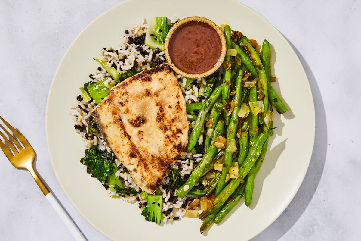 Ingredients: Barramundi, Green Beans, Water, Bok Choy, Brown Jasmine Rice, Honey, Black Rice, Red Miso Paste (Filtered Water, Cultured Rice, Whole Soybeans, Sea Salt), Sambal Oelek Chili Paste (Red Chili Peppers, Salt, Distilled Vinegar, Xanthan Gum), Unsalted Butter (Pasteurized Cream, Natural Flavorings), Toasted Sesame Oil, Rice Vinegar, Tamari (Water, Soybeans, Salt, Alcohol (To Preserve Freshness), Lactic Acid, Rice Vinegar), Garlic, Green Onions, Ginger, Olive Pomace Oil (Refined Olive Pomace Oil, Extra Virgin Olive Oil), Lime Juice (Water, Lime Juice From Concentrate), Roasted Sesame Seeds, Granulated Green Onion, Toasted Garlic, Sea Salt, Sesame Seeds, Coconut Aminos (Coconut Nectar, Coconut Blossom Sap, Sea Salt), Tahini (Sesame Seeds), Gochugaru Chile Flakes, White Pepper The nutrition facts are based off of the recommended serving size. Serving Size = 1 Tray (391g)