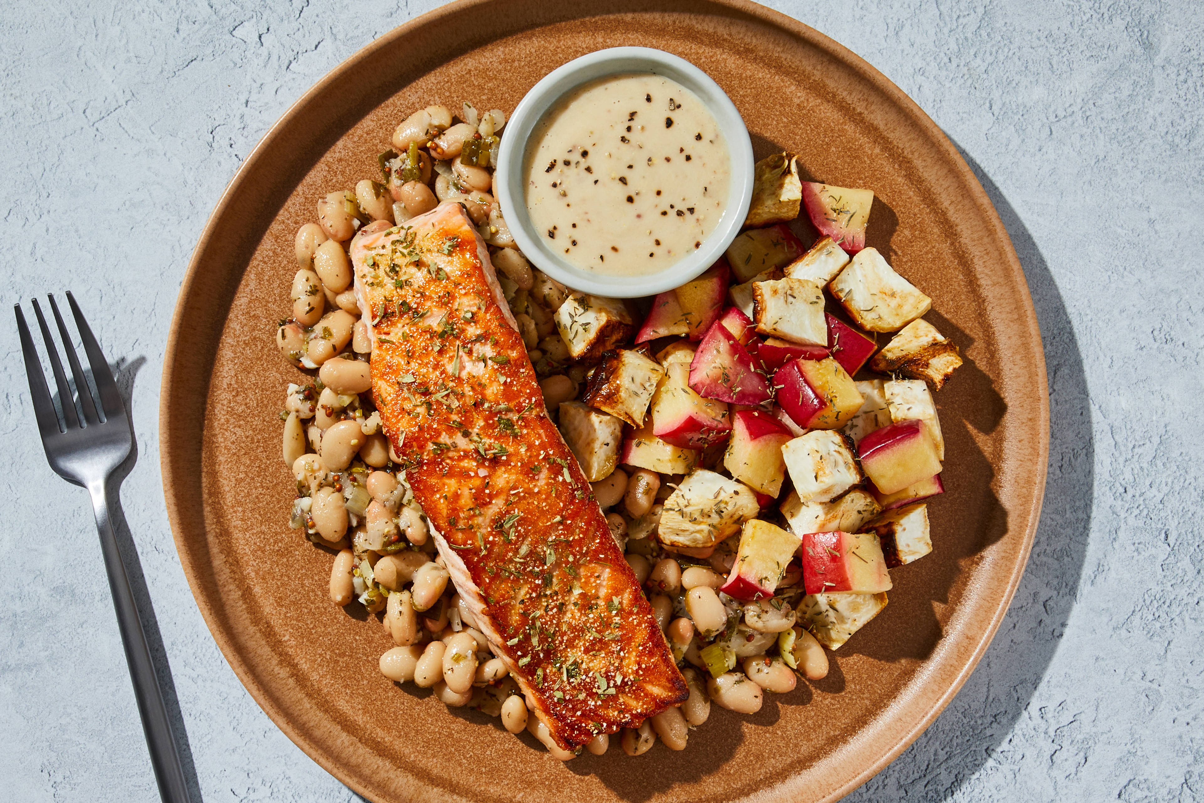 Toss chickpeas on a baking sheet with a drizzle of oil, half the Italian Seasoning (you’ll use more in the next step), salt, and pepper. Roast on top rack until chickpeas are golden and tender, 18-20 minutes. (It’s natural for chickpeas to pop a bit while roasting.)