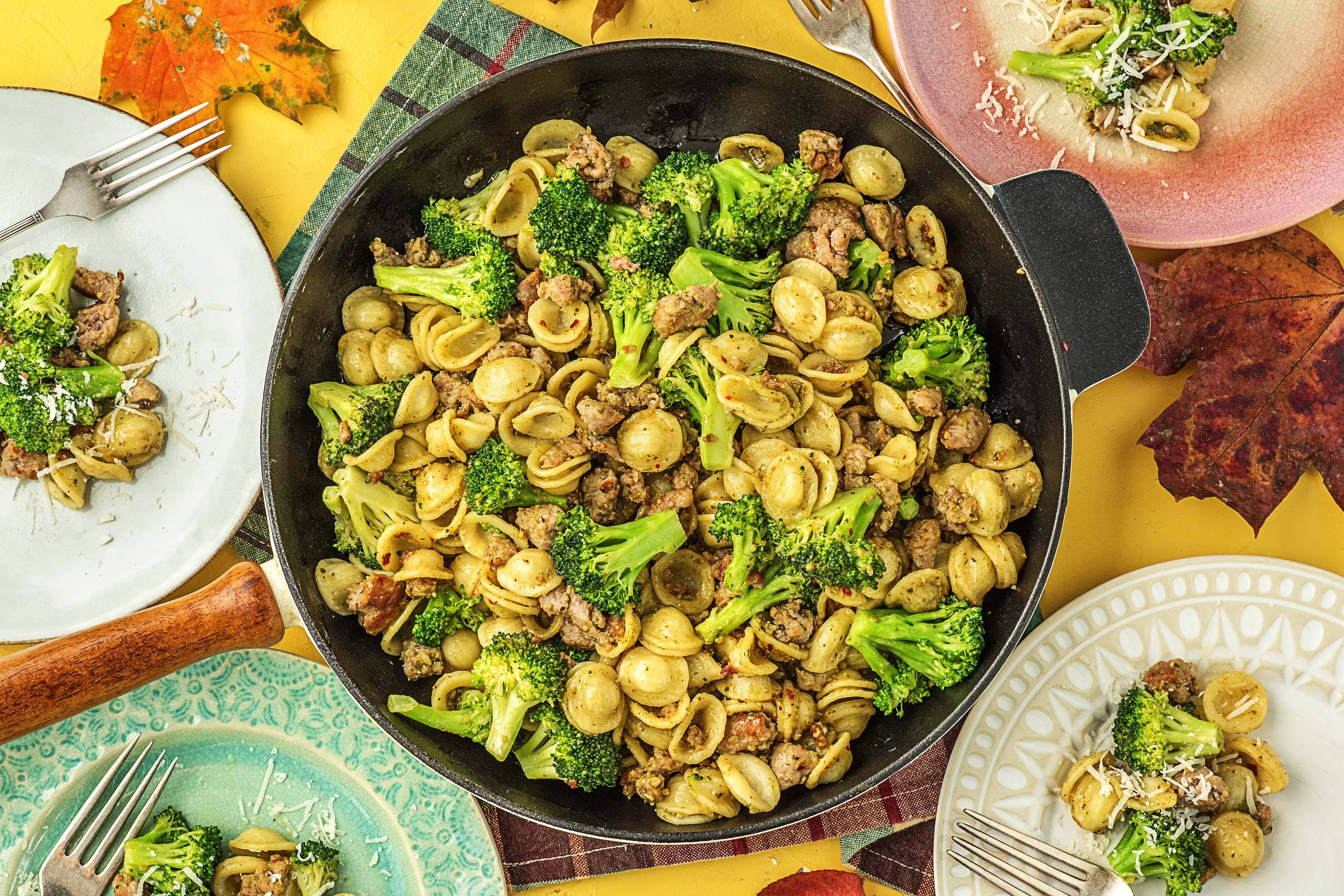 With Chicken Sausage, Gemelli Pasta, and Parmesan Toasts