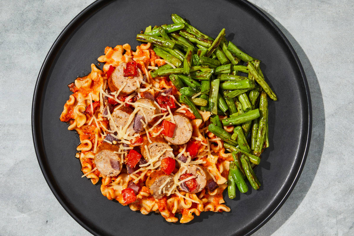 Rustic Italian flavors abound in this comforting pasta dish. Italian pork sausage is layered over brown rice lasagnette noodles, then bathed in a slow-simmered roasted red pepper marinara sauce. It’s topped with more roasted red peppers, showered with Parmesan cheese, and served with a simple side of garlicky green beans. Ingredients: Italian Pork Sausage (Pork, Water, Salt, Spices, Paprika), Green Beans, Brown Rice Lasagnette (Water, Brown Rice Flour, Potato Starch, Tapioca Starch, Whole Egg, Egg White, Xanthan Gum, Salt), Red Bell Peppers, Water, Diced Tomatoes (Tomatoes, Tomato Juice, Salt, Calcium Chloride, Citric Acid), Olive Pomace Oil (Refined Olive Pomace Oil, Extra Virgin Olive Oil), Shredded Parmesan Cheese (Pasteurized Part-Skim Milk, Cheese Culture, Salt, Enzymes, Powdered Cellulose (Added To Prevent Caking), Natamycin (A Natural Mold Inhibitor And To Protect Flavor)), Red Onion, Celery, Garlic, Onions, Tomato Paste (Tomatoes, Citric Acid), Tomato Powder (Tomato Powder, Silicon Dioxide (Anti-Caking Agent)), Lemon Juice, Granulated Garlic, Green Onions, Toasted Garlic, Black Pepper, Sea Salt, Parsley, Thyme, Dried Onion Flakes, Dried Basil, Dried Parsley, Toasted Onion Powder, Toasted Garlic Powder, Granulated Green Onion, Dried Chives, Dried Oregano The nutrition facts are based off of the recommended serving size. Serving Size = 1 Tray (340g)