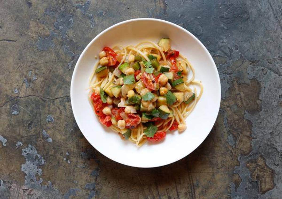 Lemony Chickpeas and Burst Tomato Linguine