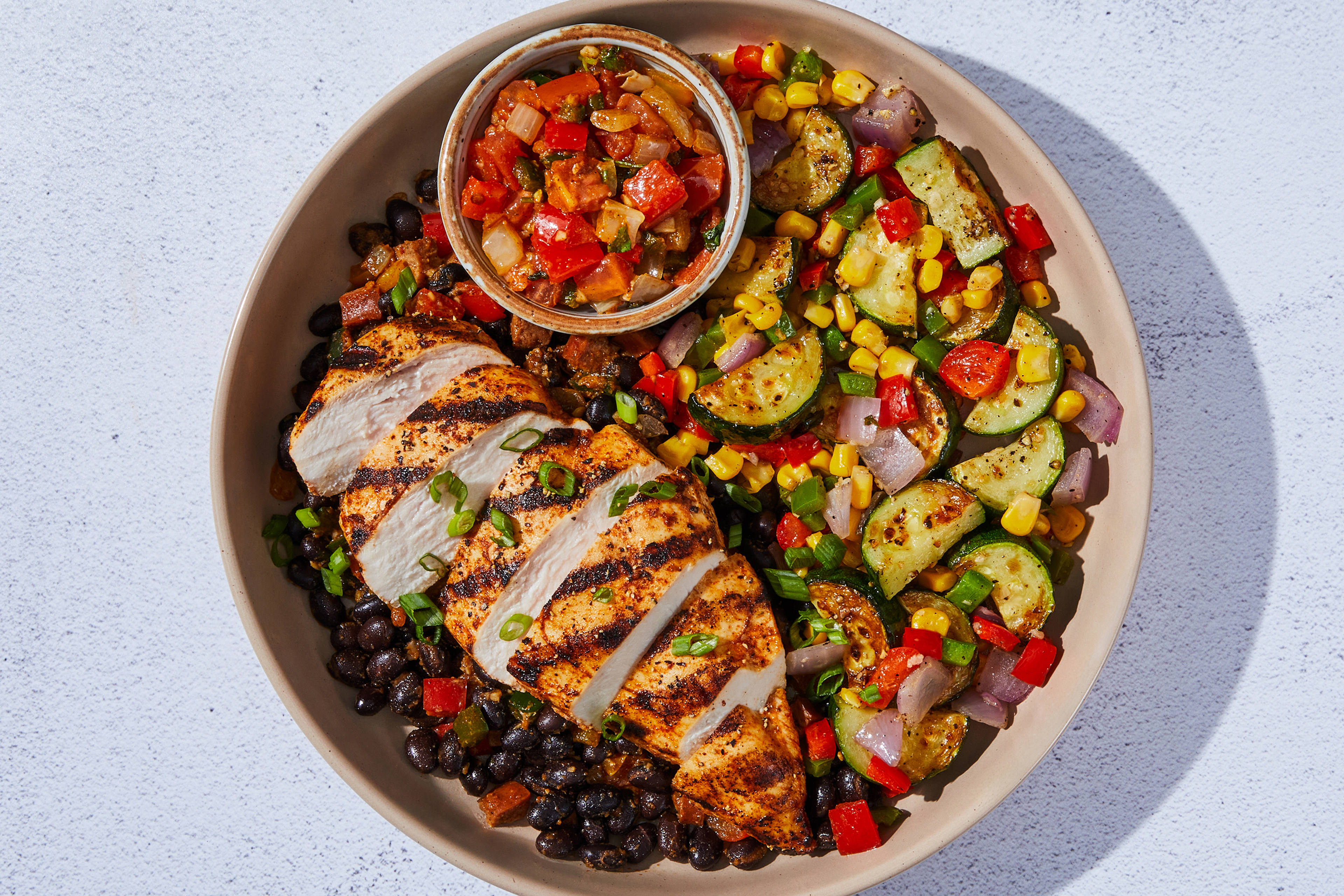 Heat a drizzle of oil in a large pan over medium-high heat. Add sliced onion and green pepper; cook, stirring occasionally, until softened and charred, 6-8 minutes. Stir in Southwest Spice and a splash or two of water until veggies are fully coated. Season with salt and pepper. Cook until water has evaporated, 1-2 minutes. Turn off heat. Transfer to a plate; cover to keep warm. Wipe out pan.