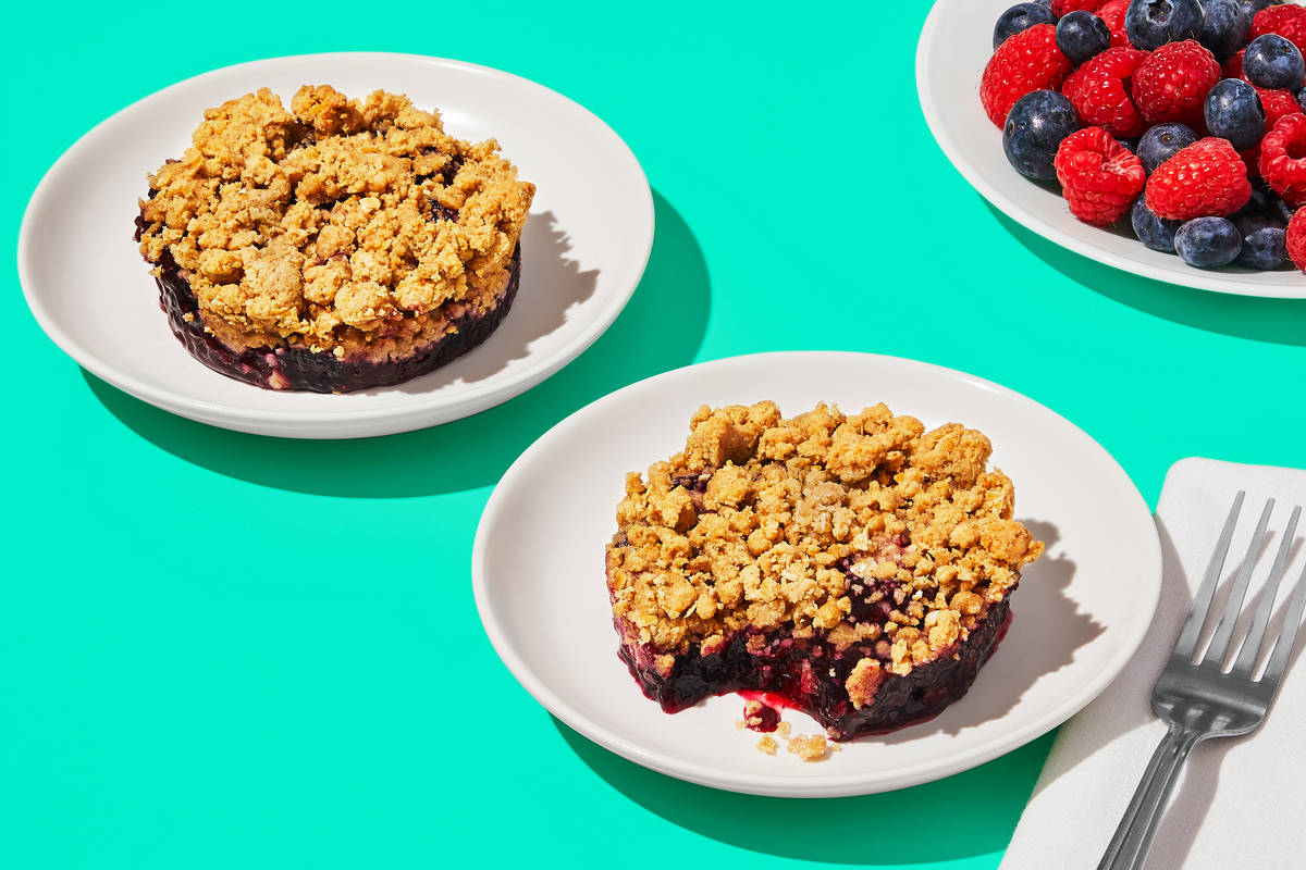 These comforting cobblers may be mini in size, but they sure are mighty in flavor. A layer of sweet berry filling is topped with a fluffy crumb topping for the perfect textural contrast. When you want to dig in, all you have to do is...nothing! Enjoy cold, at room temp, or warmed up in the microwave. (Psst—we highly recommend serving with a scoop of vanilla ice cream on top.) *Nutrition values are representative of 1 cobbler.*