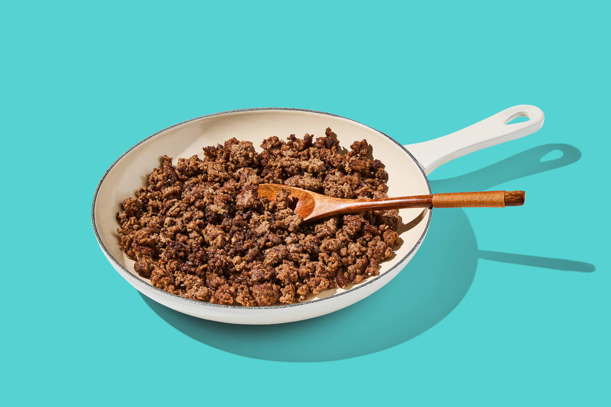 Heat a drizzle of oil in a large pan over medium-high heat. Add beef and cook, breaking up meat into pieces, until browned and cooked through, 4-6 minutes.