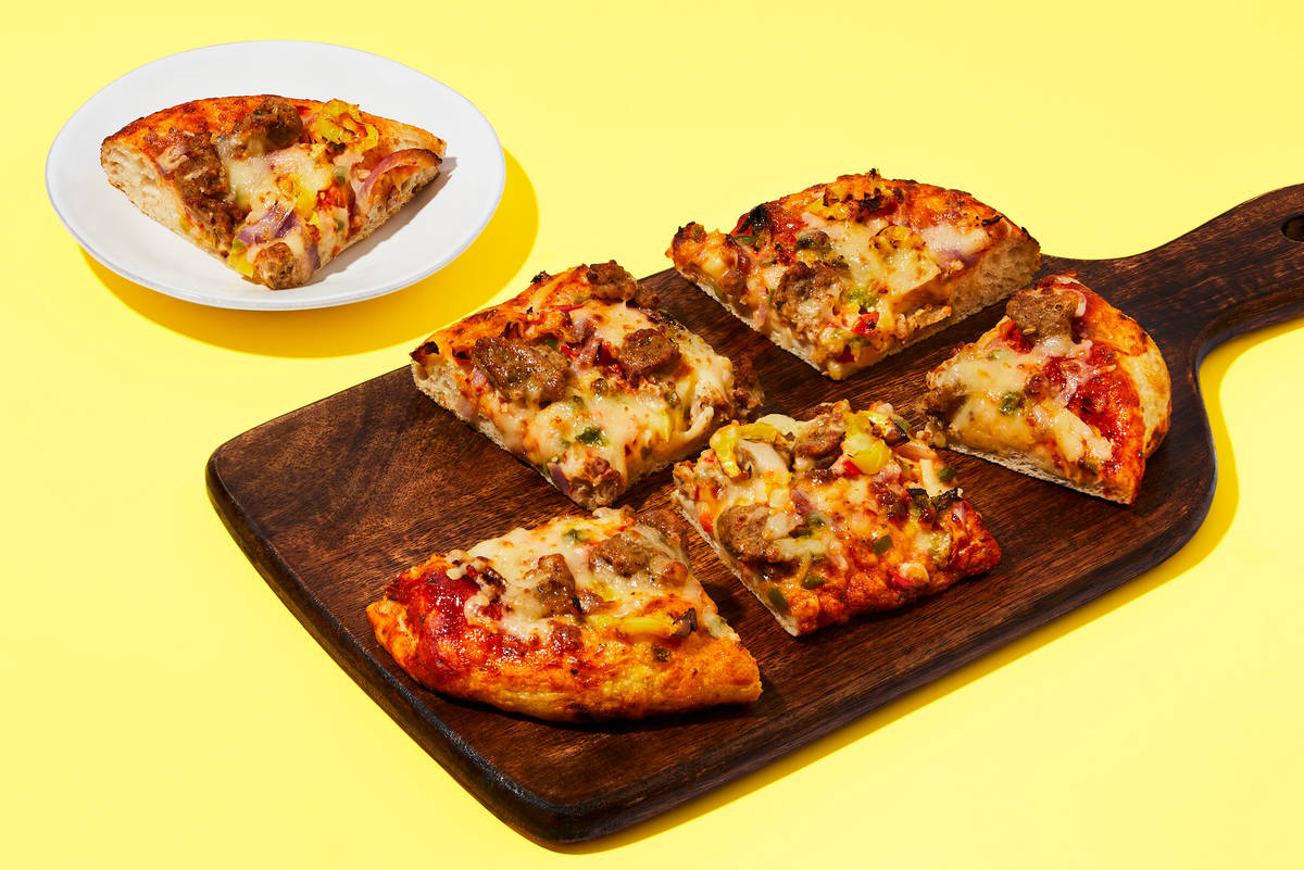 Adjust rack to middle position and preheat oven to 350 degrees. Remove and discard plastic film. Bake pizza on middle rack, 15-18 minutes.