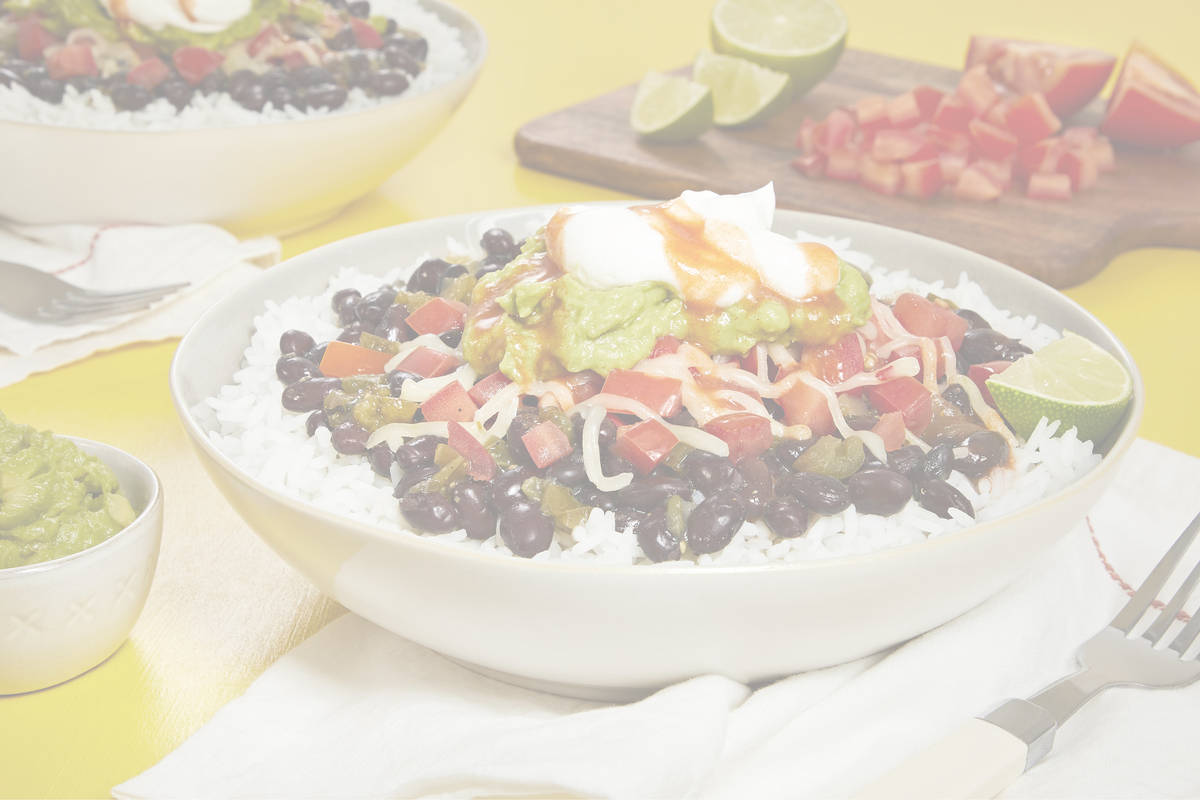 Bowls are way past “having a moment.” They’ve officially become a lunchtime staple. Why? It’s simple: everything’s better in a bowl! (Nice knowing you, plates.) But seriously, the customizable combo of carbs, protein, veggies, and a delicious sauce cannot be denied. True to form, this burrito-inspired rendition is fully loaded. Steamy rice is topped with salsa-verde-spiked black beans, chopped fresh tomato, melty cheese, and of course, big dollops of guacamole and sour cream. Customize by adding hot sauce, more salsa verde, and a squeeze of lime juice—after all, you’re the chef! All this in less than 10 minutes? You better believe it.