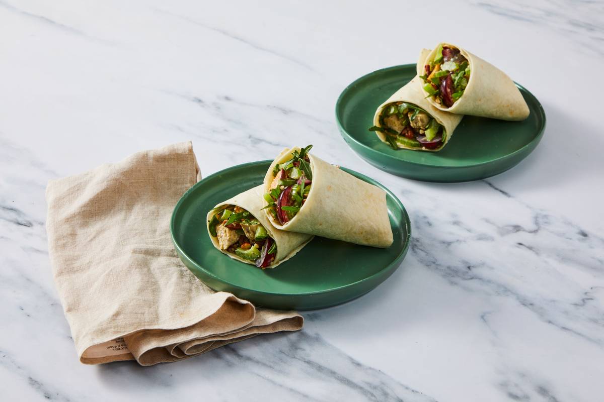 Tender diced chicken is tossed with crunchy celery, sweet grapes, and buttery pecans in a creamy, smoky dressing. Wrapped with peppery arugula in warm tortillas, these handhelds deliver a satisfying mix of textures and flavors. It’s a fresh yet hearty option that works for lunch or a light dinner.