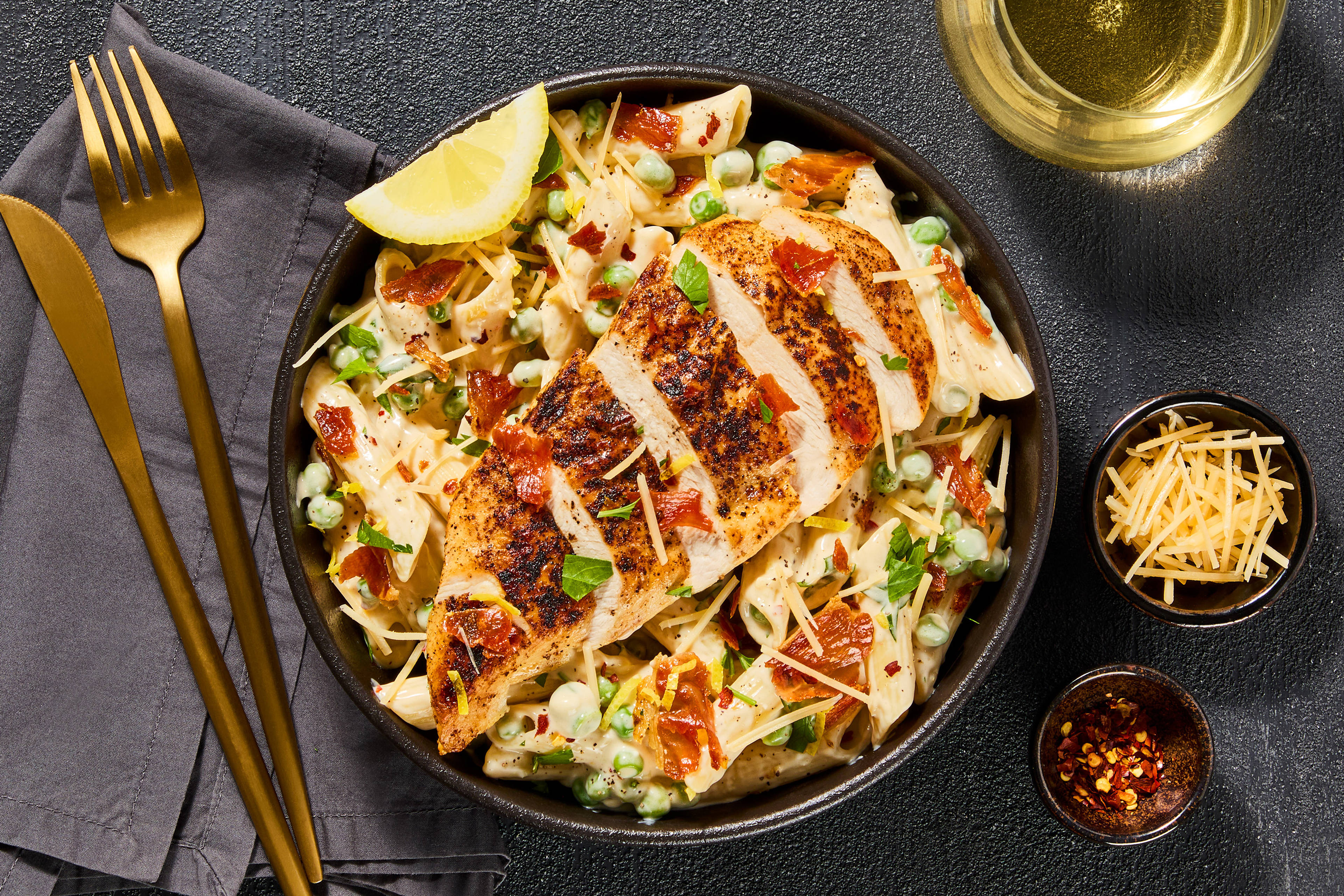 Produced in a facility that processes eggs, milk, fish, peanuts, sesame, shellfish, soy, tree nuts, and wheat.