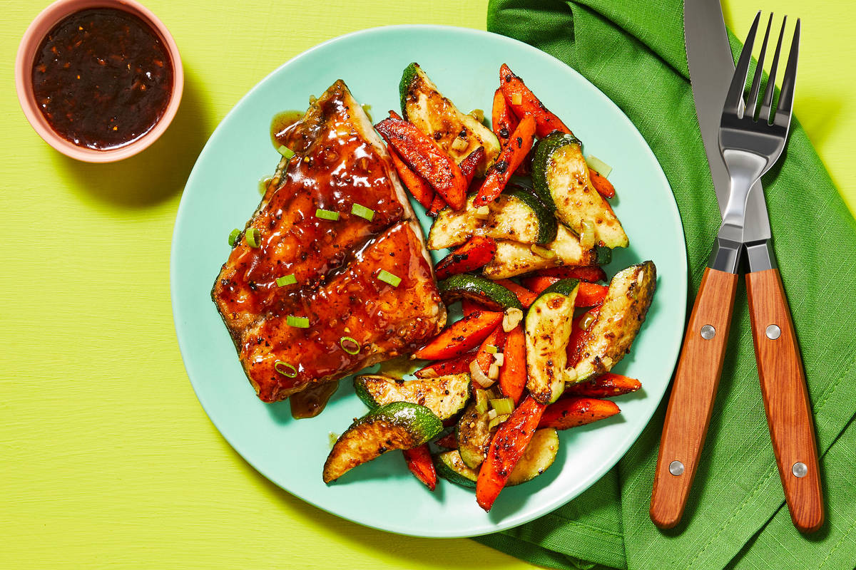 Barramundi’s delicate skin, meaty texture, and buttery, slightly sweet flavor make it a go-to for fish night. Here, it’s pan-seared for a delicious crispy skin, then coated in a sweet, savory, buttery sauce made with ginger, apricot jam, and soy sauce. It’s served alongside a stir-fry of garlicky carrots, zucchini, and scallion. This lean protein and veggie dinner idea will leave you satisfied (but not stuffed).