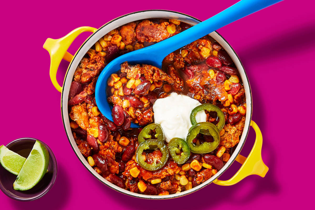 A big pot of warming chili that’s ready in 20 minutes? Yes, friends, it’s not only doable, it’s super easy, too! The key is using pork sausage, which already comes with its own seasoning. The other clever trick is adding our Blackening Spice. The mixture includes the smoky, bold spices you want in chili but without the hassle of measuring each one individually. Throw in some corn and kidney beans, plus sour cream and pickled jalapeños for garnish, and you’ve got a hearty dinner at home.