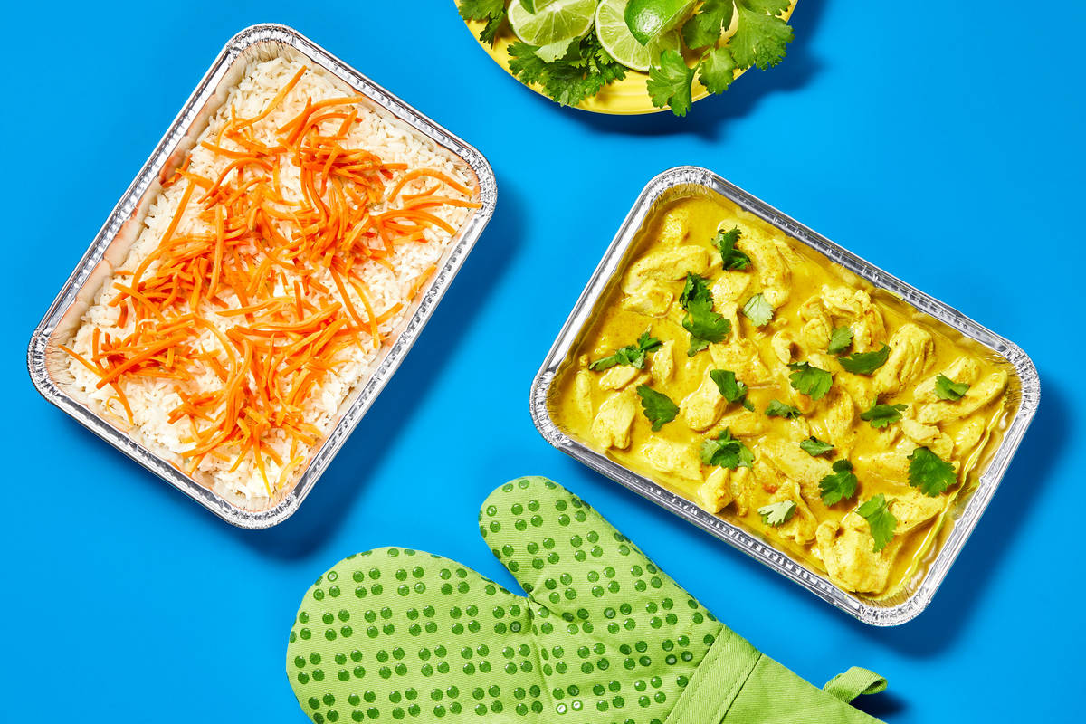 We can never resist a creamy, aromatic coconut curry, which is why we were over the moon when our chefs created this version. It’s got tender chicken breast strips in a creamy, spicy, sweet, and savory sauce, all served over carrot-speckled rice with fresh cilantro and lime juice for brightness. The best part? It’s ready in just 25 minutes from start to finish—and since we’re sending our oven-ready aluminum trays, cleanup is a breeze, too. Talk about a dinner winner!