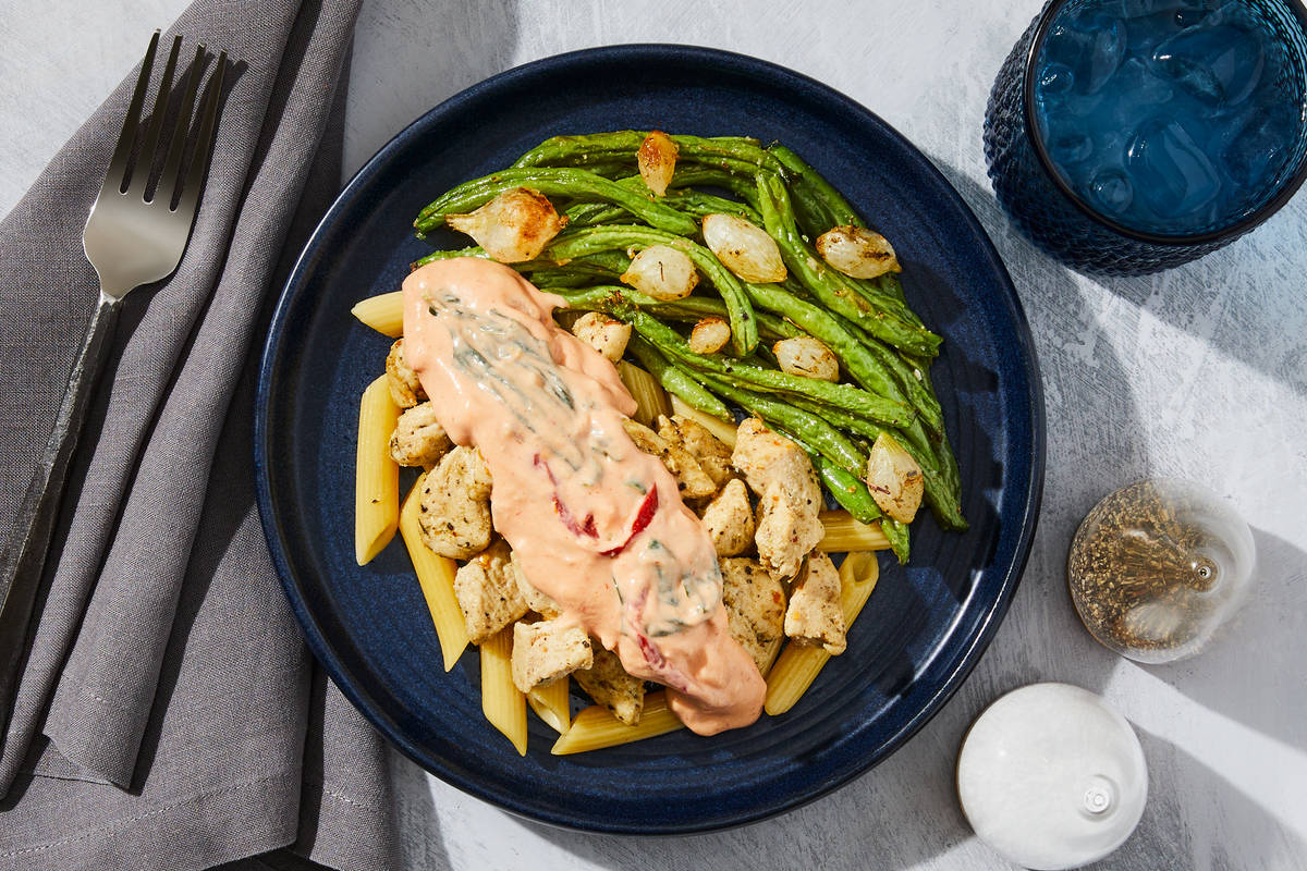 It’s hard not to love the nutty flavor of Parmesan, the star of tonight’s sauce. Packed with creamy, savory goodness, this comforting bowl of cauliflower penne is coated in a savory Parmesan and sun-dried tomato sauce that’s loaded with bites of juicy herbed chicken. Complete your pasta night with a generous side of tender roasted pearl onions and green beans. Ingredients: Boneless Chicken Breast With Rib Meat, Green Beans, Cauliflower Penne (Water, Cauliflower Powder, Potato Starch, Tapioca Starch, Whole Egg, Egg White, Xanthan Gum, Konjac, Salt), Pearl Onions, Heavy Cream (Heavy Cream, Milk, Gellan Gum, Sunflower Lecithin), Water, Olive Pomace Oil (Refined Olive Pomace Oil, Extra Virgin Olive Oil), Grated Parmesan Cheese (Imported Parmesan Cheese (Pasteurized Cow'S Milk, Cheese Culture, Salt, Enzymes), Water, Milk Protein, Palm Oil Blend, Disodium Phosphate, Citric Acid, Xanthan Gum, Powdered Cellulose (Anti-Caking Agent), Calcium Propionate (Preservative)), Onions, Spinach, Sun-Dried Tomatoes (Sun-Dried Tomatoes, Salt), Vinegar, Concentrated Crushed Tomatoes (Tomatoes, Salt, Citric Acid), Garlic, Sea Salt, Brown Chicken Stock (Chicken Stock, Mirepoix Stock (Made Of Carrot, Celery And Onion Stocks), Salt, Gelatin, White Wine), Granulated Garlic, Ground Fennel, Rosemary Powder, Black Pepper, Granulated Onion, Crushed Red Pepper Flakes, Thyme, Rubbed Sage, Dried Oregano, Dried Thyme, Dried Basil The nutrition facts are based off of the recommended serving size. Serving Size = 1 Tray (318g)