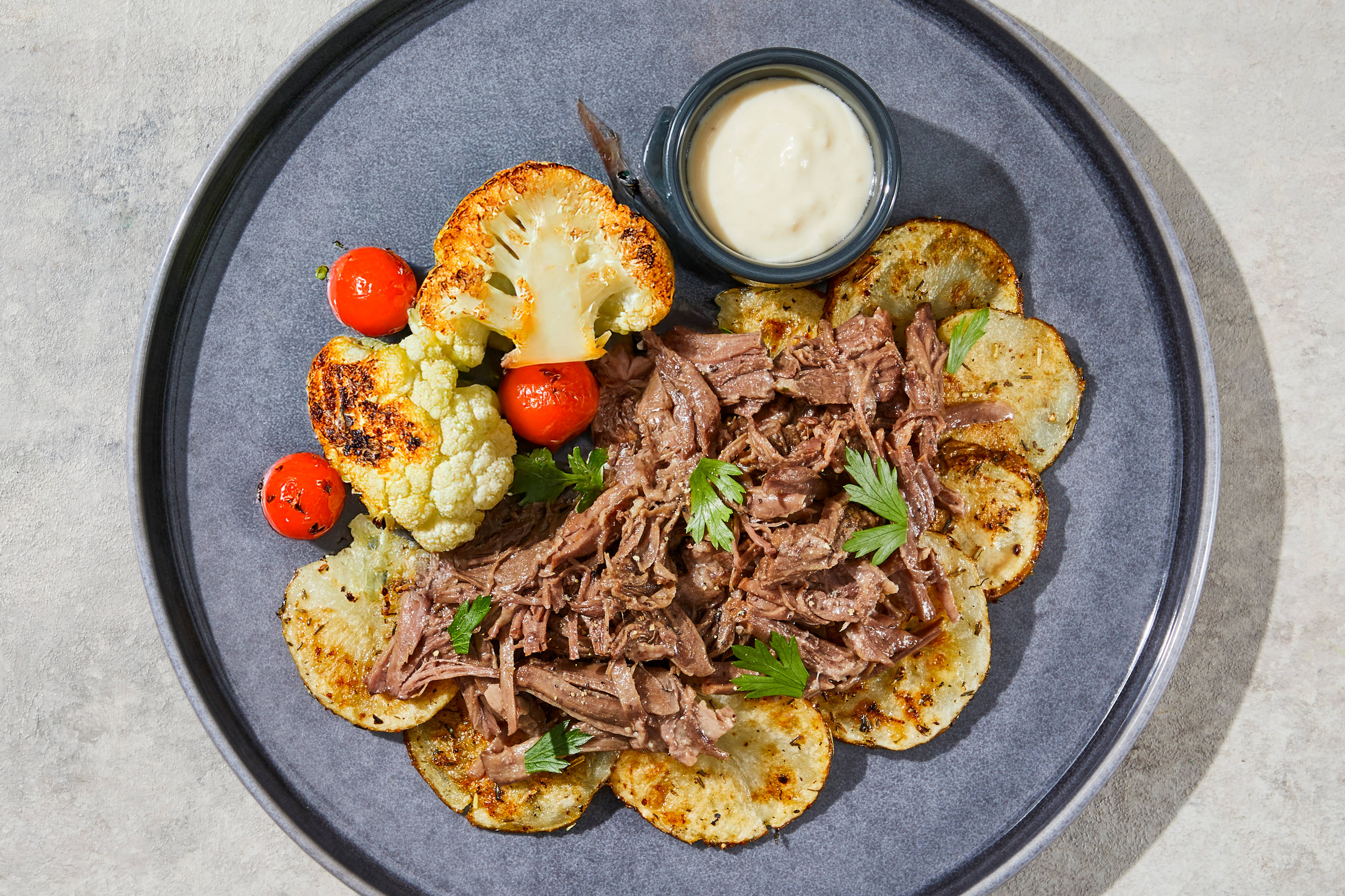 These lettuce wraps make a perfect meal for that satisfied-but-not-stuffed feeling. You’ll toss juicy seared chicken with shredded lettuce, mayo, pesto, and juicy grape tomatoes. Load it all into crisp baby lettuce leaves, then shower with buttery panko breadcrumbs for crunchy contrast; serve it up in a quick 20 minutes!