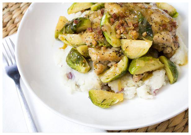 with Shredded Brussels Sprouts and a Chili Honey Drizzle