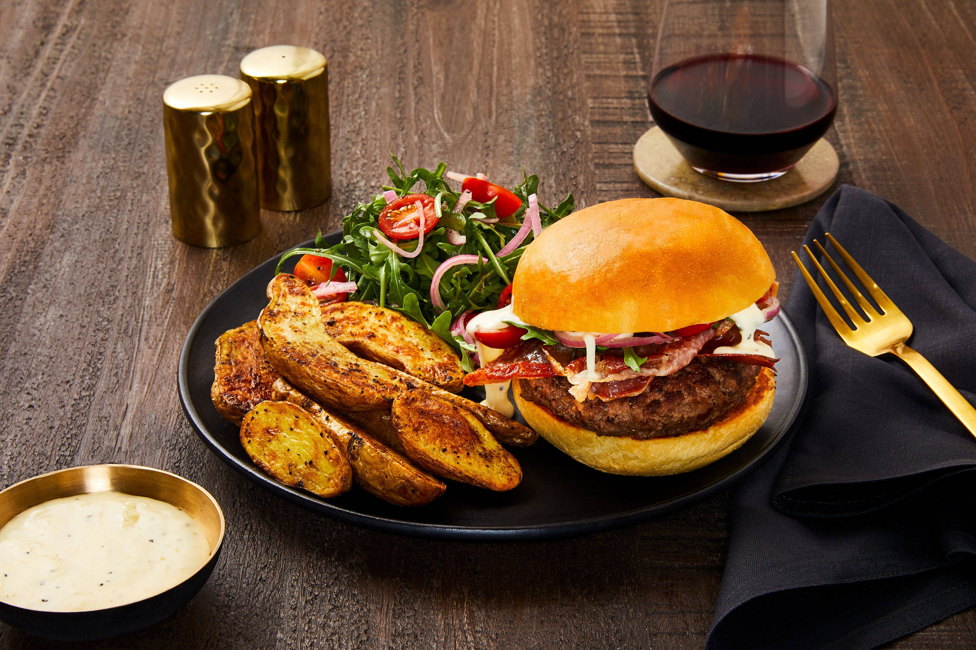 with Truffled Potato Wedges & Mixed Green Salad