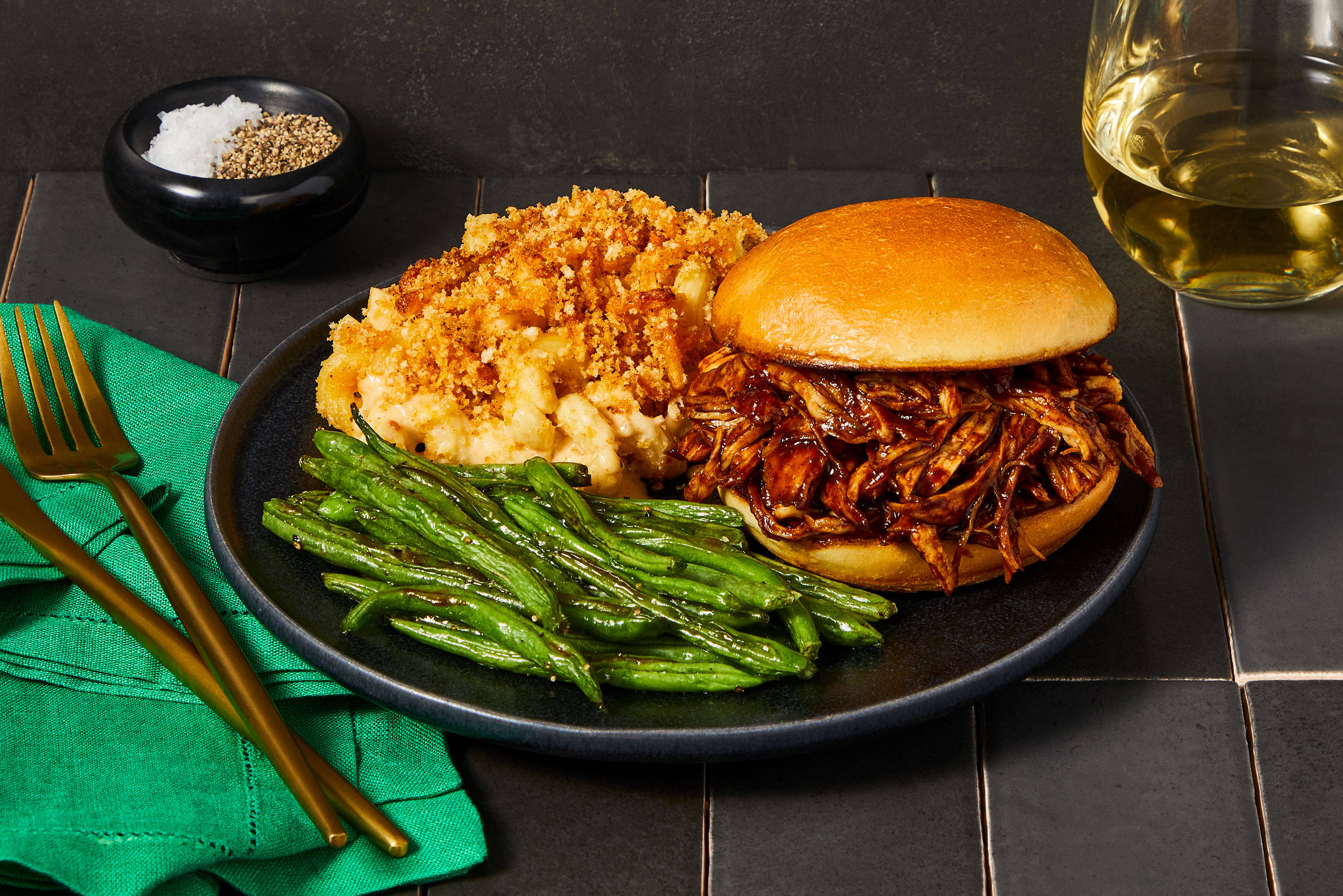 Evoke your favorite summertime memories—the smell of barbecue wafting through the warm evening air, crickets chirping, the sound of kids playing outdoors—with this delicious sandwich that’s ready in just 10 minutes. Slather juicy, fully cooked chicken with rich BBQ sauce and tuck into a soft brioche bun spread with smoky paprika mayo. Top with tangy cabbage slaw and fresh tomatoes for color and crunch, and enjoy the cookout vibe!