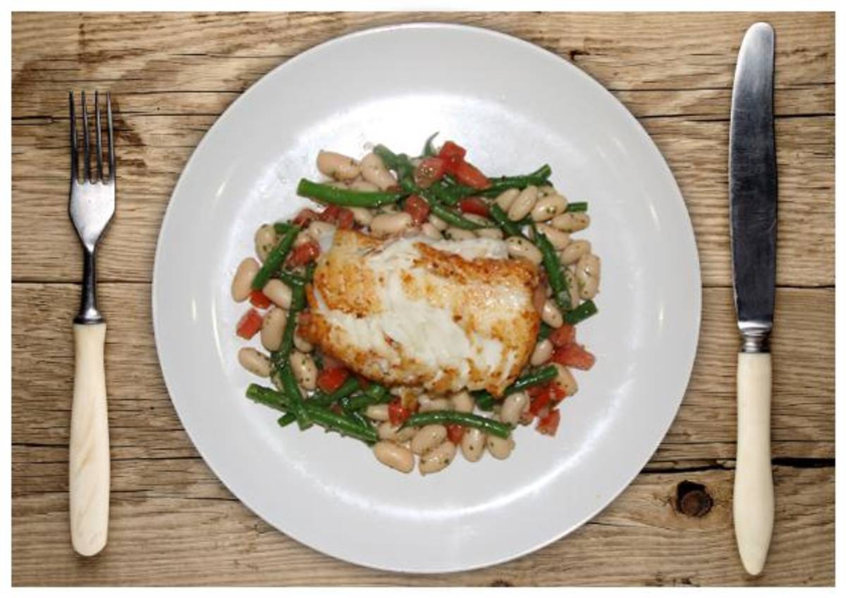 undefinedundefined protein A light dish that’s great for a summer night. Mahi Mahi is seared until flaky and served over a fresh bean salad of cannellini beans, green beans, and tomatoes in a tangy onion-cilantro vinaigrette.