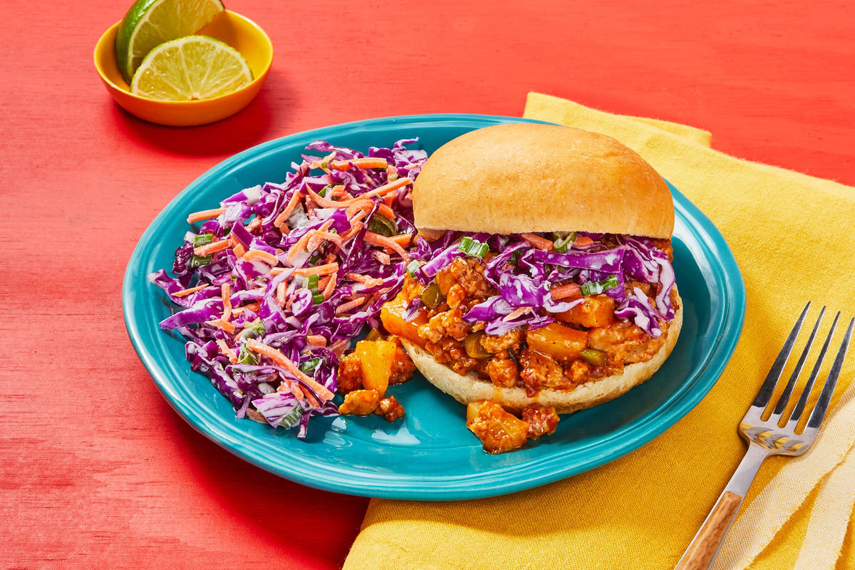 • Divide pork filling and some slaw between buns. Divide sloppy joes between plates. Serve with any remaining slaw and lime wedges on the side.