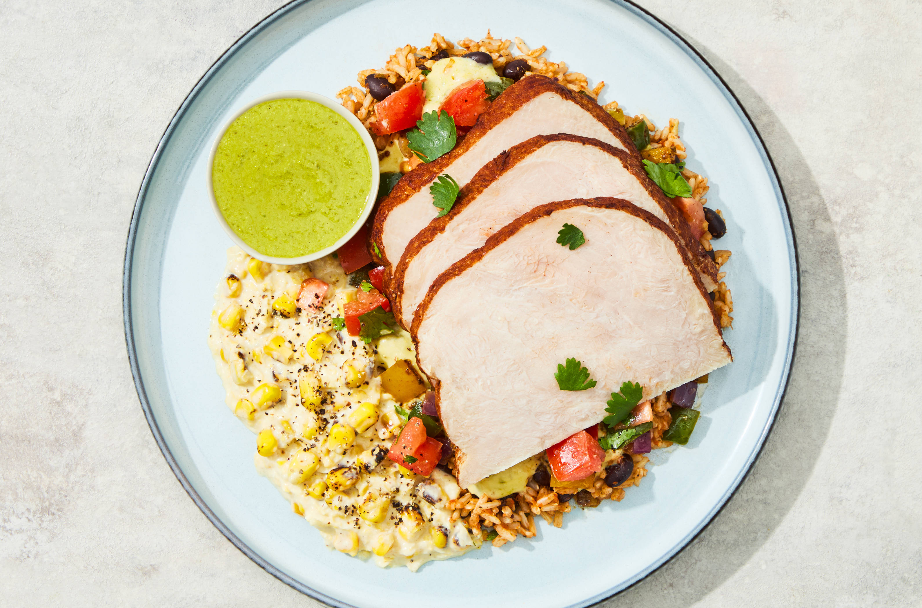 Cut sweet potato into ½-inch-thick wedges. Toss on a baking sheet with a large drizzle of olive oil, half the Southwest Spice Blend (all for 4 servings), salt, and pepper. Spread out in a single layer.