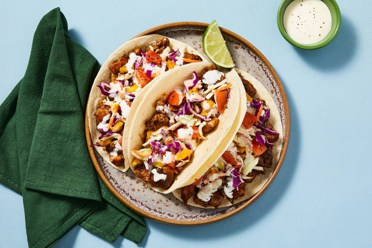 Crank up the heat and take tacos for a tropical spin with sweet and fiery Jamaican-style jerk chicken that cooks up in a flash! Tuck that spicy chicken into warm flour tortillas, then top your tacos with a tangle of cabbage slaw studded with sweet mango, juicy tomato, and tangy lime juice, and dig right in.