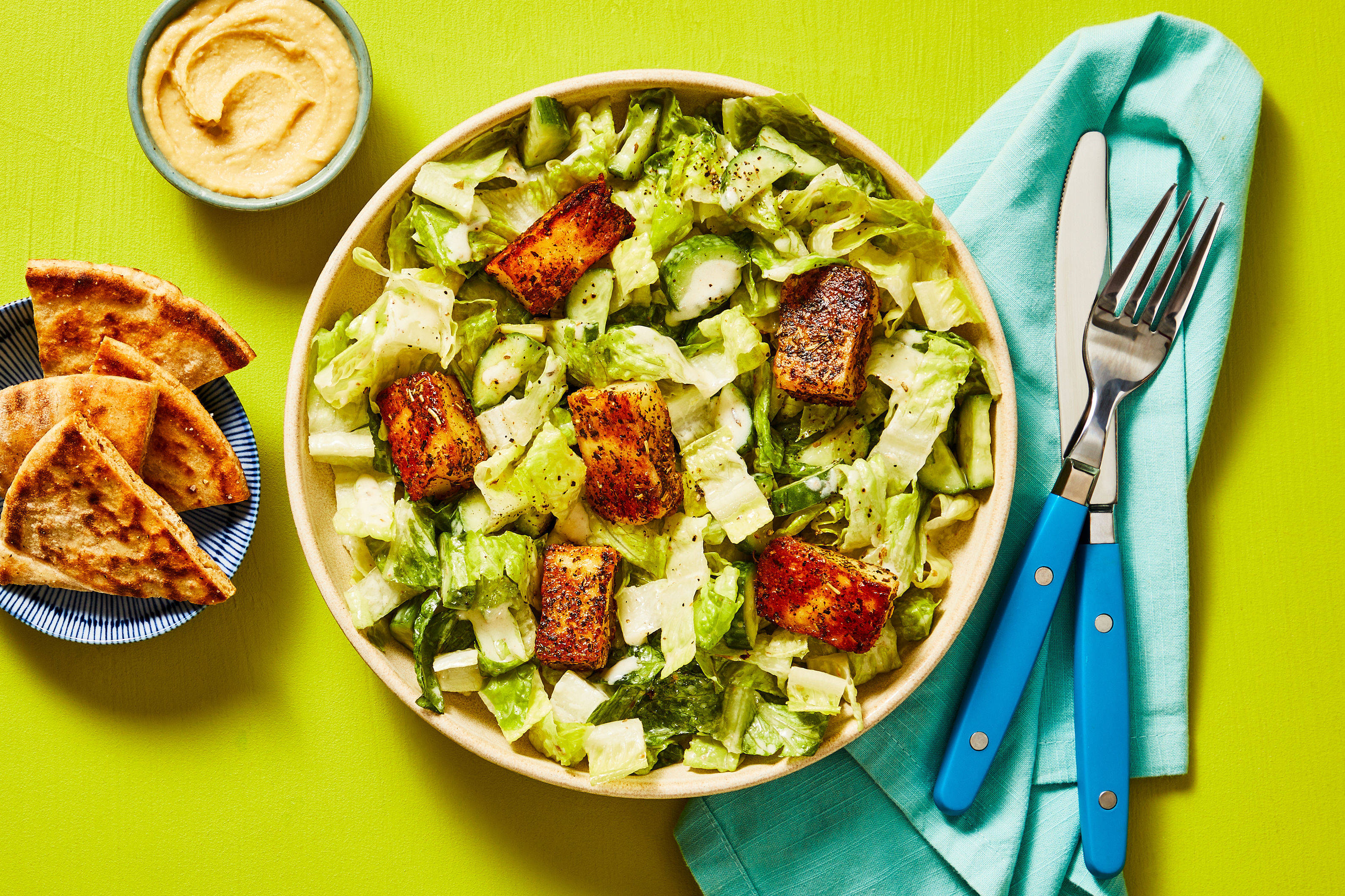 With this curated selection of favorites from the HelloFresh Market, you'll get dinner or lunch on the table in record time! Just follow our simple web instructions to whip up a satisfying Mediterranean Crunch salad topped with juicy, dark meat chicken and served with pita bread to make the meal complete. Unlike regular HelloFresh recipes, this bundle doesn’t come with a full recipe card in your box. Instead, use the HelloCustom card that comes with your protein for cooking instructions and head to recipe instructions below for the simple guide to finish your meal.