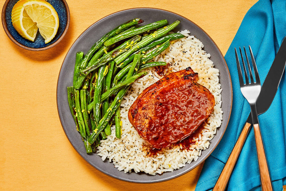 ![[SWAP PORK CHOPS TO ORGANIC CHICKEN CUTLETS] Peach-Glazed BBQ-Rubbed Pork Chops with Lemony Green Beans and Garlic Rice (10 oz Pork Chop)](https://media.hellofresh.com/q_100,w_3840,f_auto,c_limit,fl_lossy/recipes/image/633daf8b01a8ed7e090c0a12-50335ebb-e895b7cd.jpg)