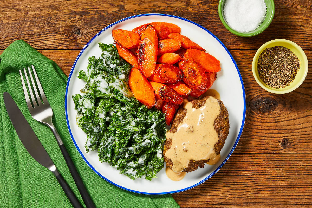 This recipe was just okay. It wasn't well liked by the family. We enjoyed the thicker cut roasted carrots (1 inch better than the usual 1/2 inch slice). The quality of carrots in this box of HF was excellent, btw, thank you! We did not enjoy the creamed kale. 2 out of 4 preferred non-creamed. One liked it creamed but not this way. Another said was thrown off by the slight sweetness. The meatloaf was fine but texture and taste were just average. All said they preferred past meatloaf recipes better. If it weren't for the yummy carrots, would be two stars.