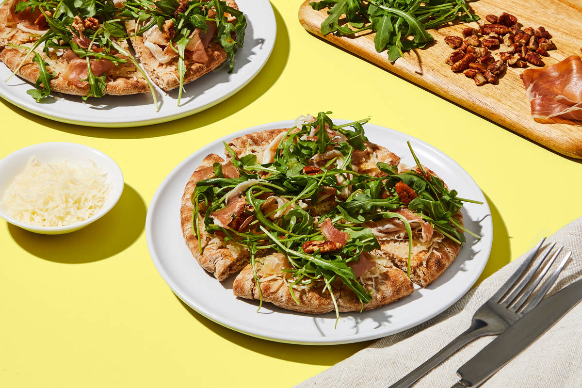 Is it a pizza? Is it a salad? Yes, and yes! And it’s all wrapped up in one delicious, nutritious 10-minute package. You’ll top a fluffy whole wheat pita with a blend of Italian cheeses, give it a quick zap in the microwave (hello, melty goodness) then toss together a peppery arugula salad with crunchy pecans and salty prosciutto in a lemon-fig-olive oil vinaigrette. Finish your pita pizza with a big pile of salad and, if you’re a heat seeker, a sprinkle (or two) of chili flakes. It’s a sweet two-for-one lunch idea that’s hard to pass up!