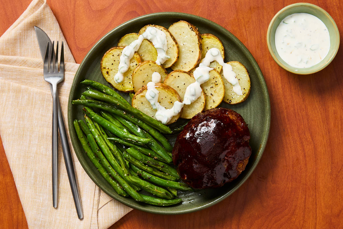 Don’t let the name fool you: These meatloaves are nothing like the basic version you grew up eating (sorry not sorry, Mom and Dad!). Ground beef is infused with scallions and BBQ seasoning, then the shaped loaves are covered with a simply irresistible BBQ glaze. Add a side of roasted green beans and shingled potatoes drizzled with scallion crema, and you may just be calling home to give your parents a cooking lesson!