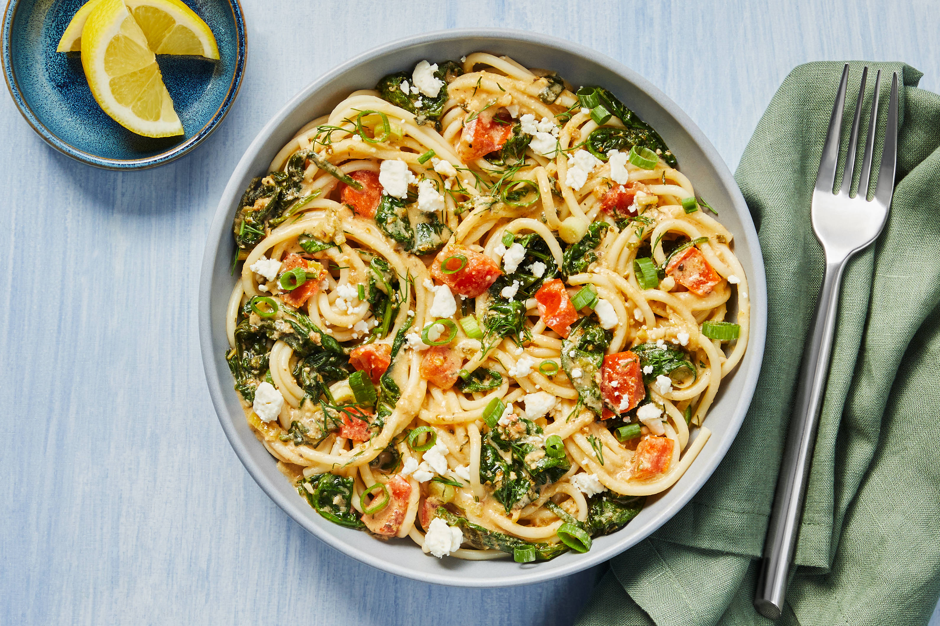 Spinach is a leafy green that can fit in a variety of meals. Spinach can fit anywhere, from breakfast, brunch, and lunch to appetizers, side dishes, and the main course. Eating spinach is an excellent way to increase your intake of vitamin A, vitamin C, vitamin K, iron, calcium, potassium, and fiber. Here at HelloFresh, we offer an array of dishes highlighting spinach, from our Cheesy Spinach, Tomato & Feta Panini to our Spanakopita Spinach Salad.
