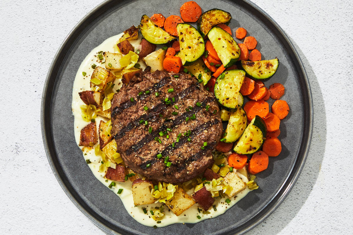 Ingredients: Ground Beef, Red Potatoes (Red Potatoes, Sodium Metabisulfite (Added To Maintain Color)), Carrots, Zucchini, Leeks, Water, Garlic, Onions, Shredded White Cheddar Cheese (Pasteurized Milk, Cheese Cultures, Salt, Enzymes, Anti-Caking Agents (Potato Starch, Powdered Cellulose, Natamycin (A Natural Mold Inhibitor))), Heavy Cream (Heavy Cream, Milk, Gellan Gum, Sunflower Lecithin), Reduced Fat Milk (Pasteurized Reduced Fat Milk, Vitamin A Palmitate, Vitamin D3), Neufchatel Cheese (Pasteurized Milk And Cream, Skim Milk, Cheese Culture, Salt, Guar Gum, Carob Bean Gum, Xanthan Gum), Olive Pomace Oil (Refined Olive Pomace Oil, Extra Virgin Olive Oil), Vinegar, Granulated Onion, Tapioca Starch, Unsalted Butter (Pasteurized Cream, Natural Flavorings), Roasted Garlic Oil (Olive Pomace Oil (Refined Olive Pomace Oil, Extra Virgin Olive Oil) Garlic), Grated Parmesan Cheese (Imported Parmesan Cheese (Pasteurized Cow'S Milk, Cheese Culture, Salt, Enzymes), Water, Milk Protein, Palm Oil Blend, Disodium Phosphate, Citric Acid, Xanthan Gum, Powdered Cellulose (Anti-Caking Agent), Calcium Propionate (Preservative)), Sea Salt, Reduced Brown Stock (Veal Stock (Veal Bones, Water), Beef Stock, Mirepoix Stock (Made Of Carrot, Celery, And Onion Stocks), Tomato Paste, Salt, Gelatin, Red Wine Concentrate (Sulfites), Onion Juice Concentrate, Carrot Juice Concentrate, Celery Juice Concentrate, Yeast Extract, Natural Flavors), Toasted Garlic, White Truffle Oil (Pure Olive Oil, Artificial And Natural Flavor), Granulated Garlic, Dried Chives, Dried Parsley, Toasted Onion Powder, Toasted Garlic Powder, Black Pepper, Smoked Black Pepper (Pepper, Smoke Flavor), Applewood Smoked Salt (Salt, Contains 2% Or Less Of Smoke Flavor), Ground Fennel, Rosemary, Gochugaru Chile Flakes, Dried Oregano